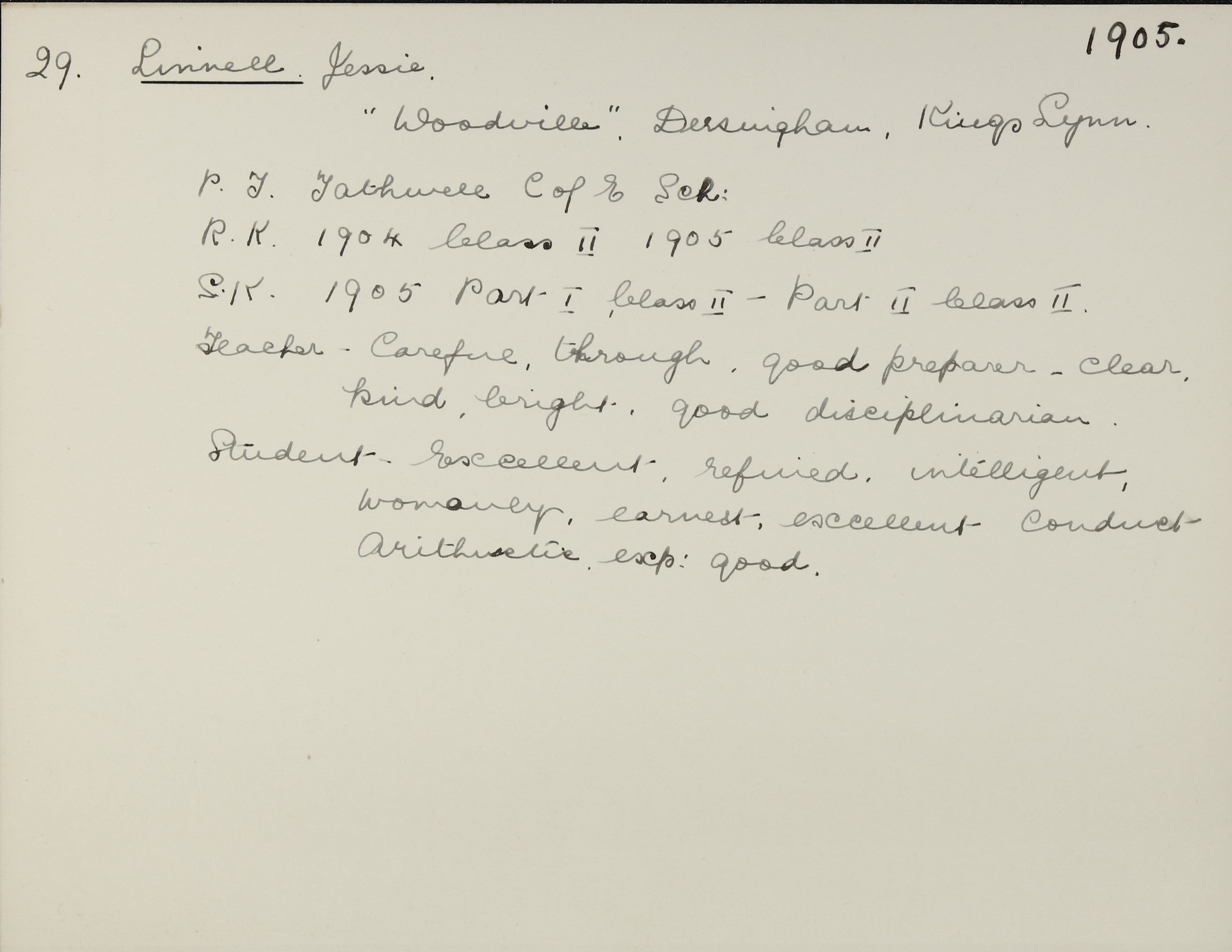 She is at The Oaks, Marchie Row, Norfolk. Her father is listed as ‘Farmer Dealer & Dairy Man’. Jessie and her siblings (Annette, Reginald and Winifred) are unlisted.