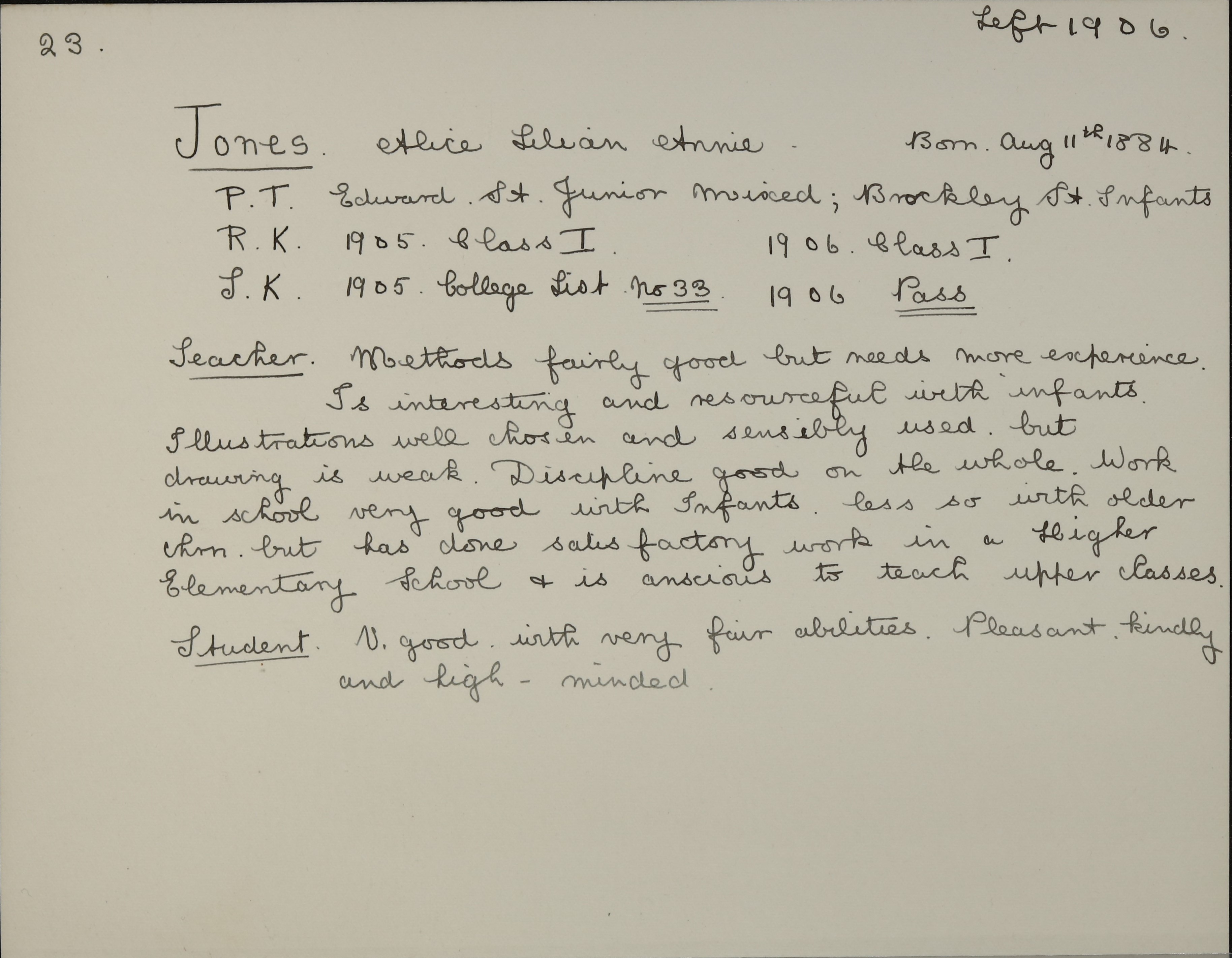 Sisters: Jessie Edith Emily Jones (b. 1882) [LDTC 1905]