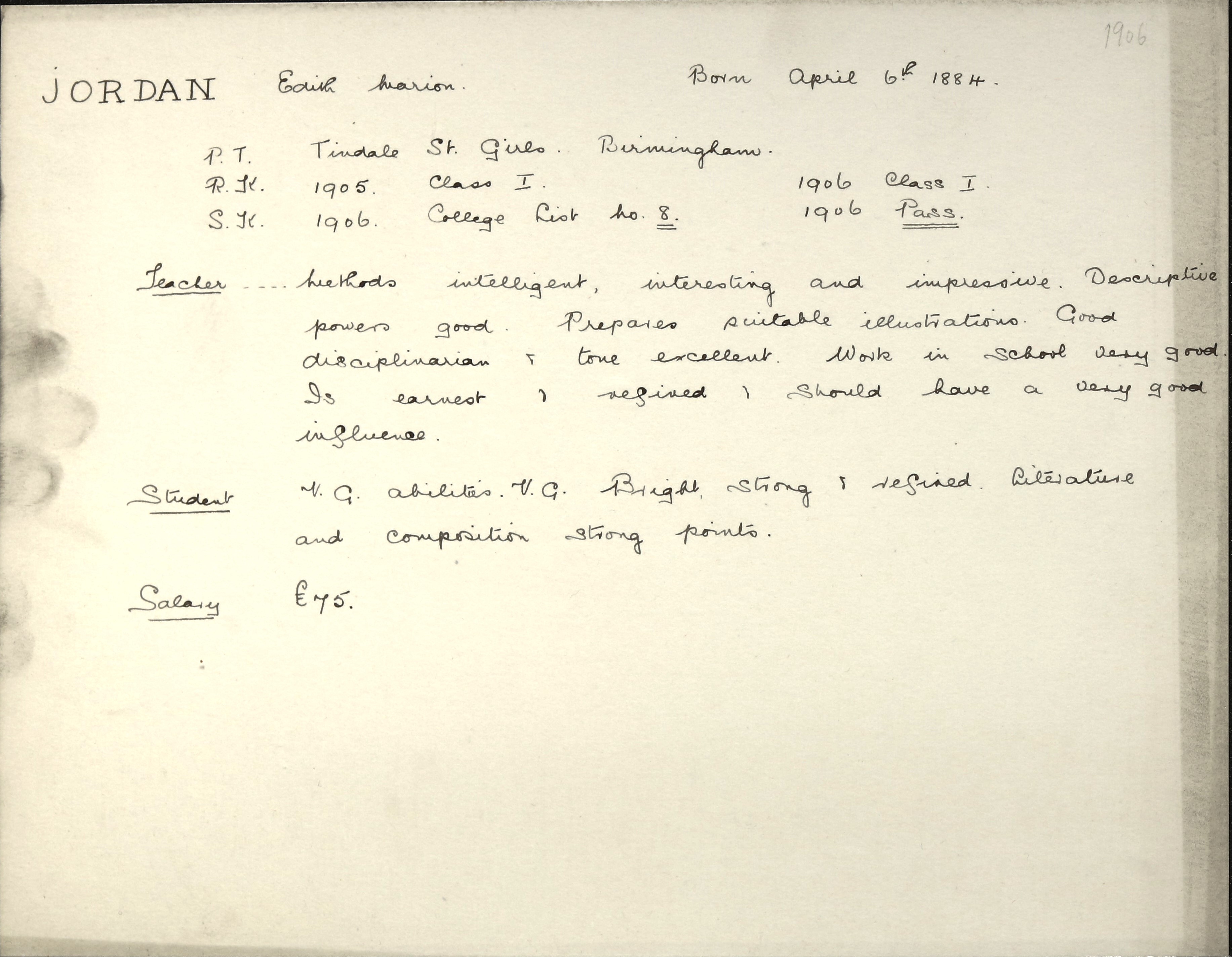 Birth: 6 April 1884, Aston