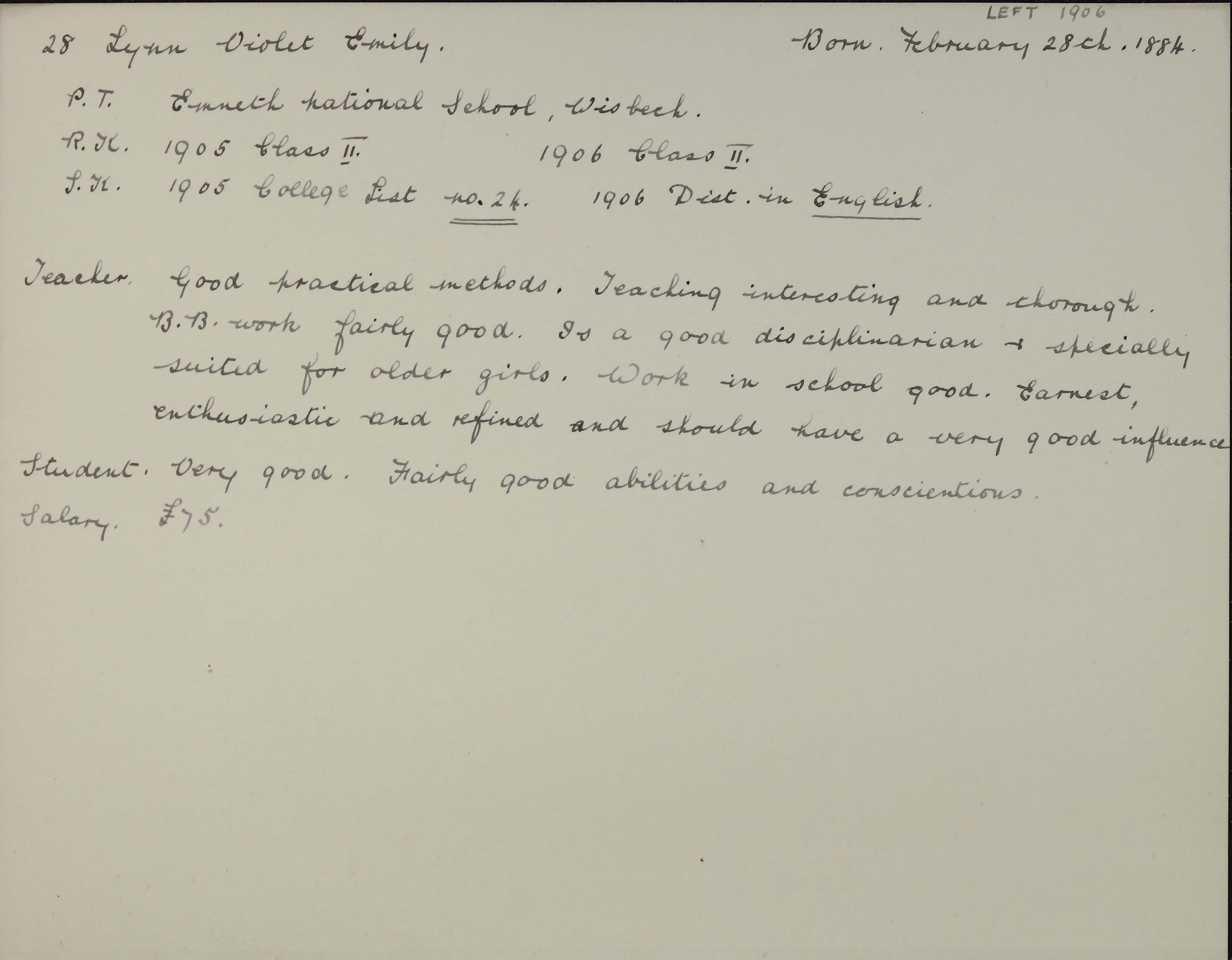 She is at Church Road, Emneth. Her mother is listed as ‘Fruit Grower’. Violet is unlisted.