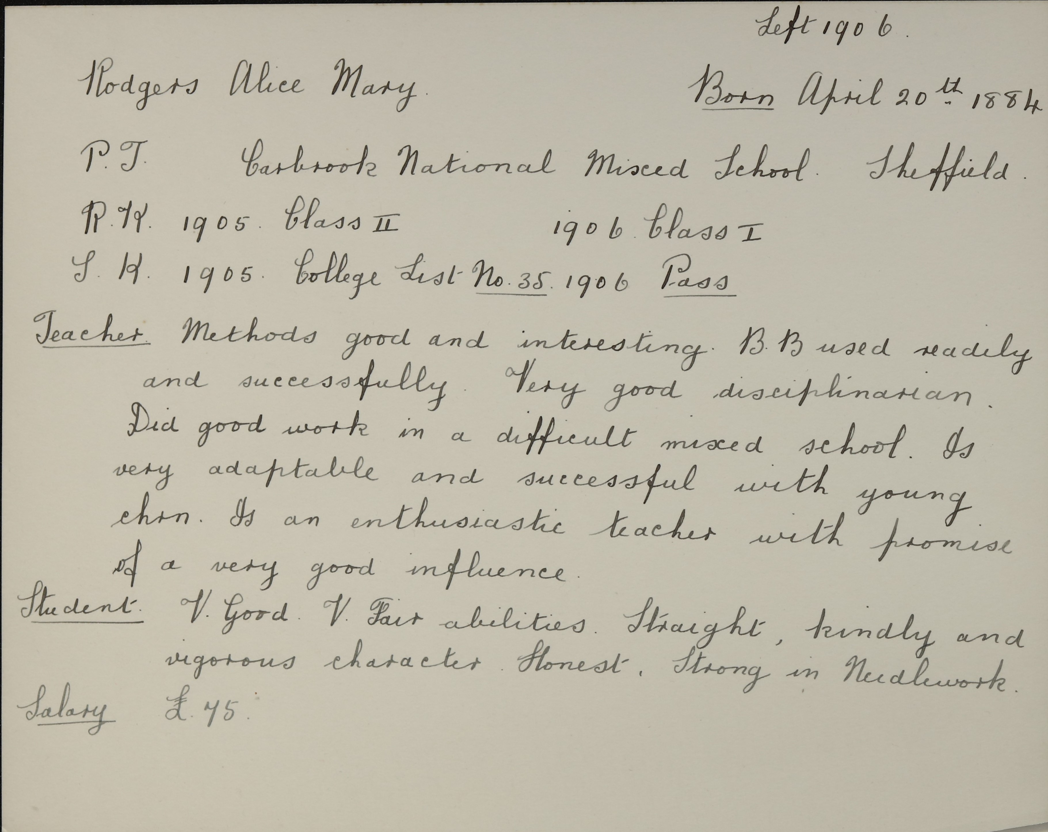 Born: 20 April 1884, Sheffield