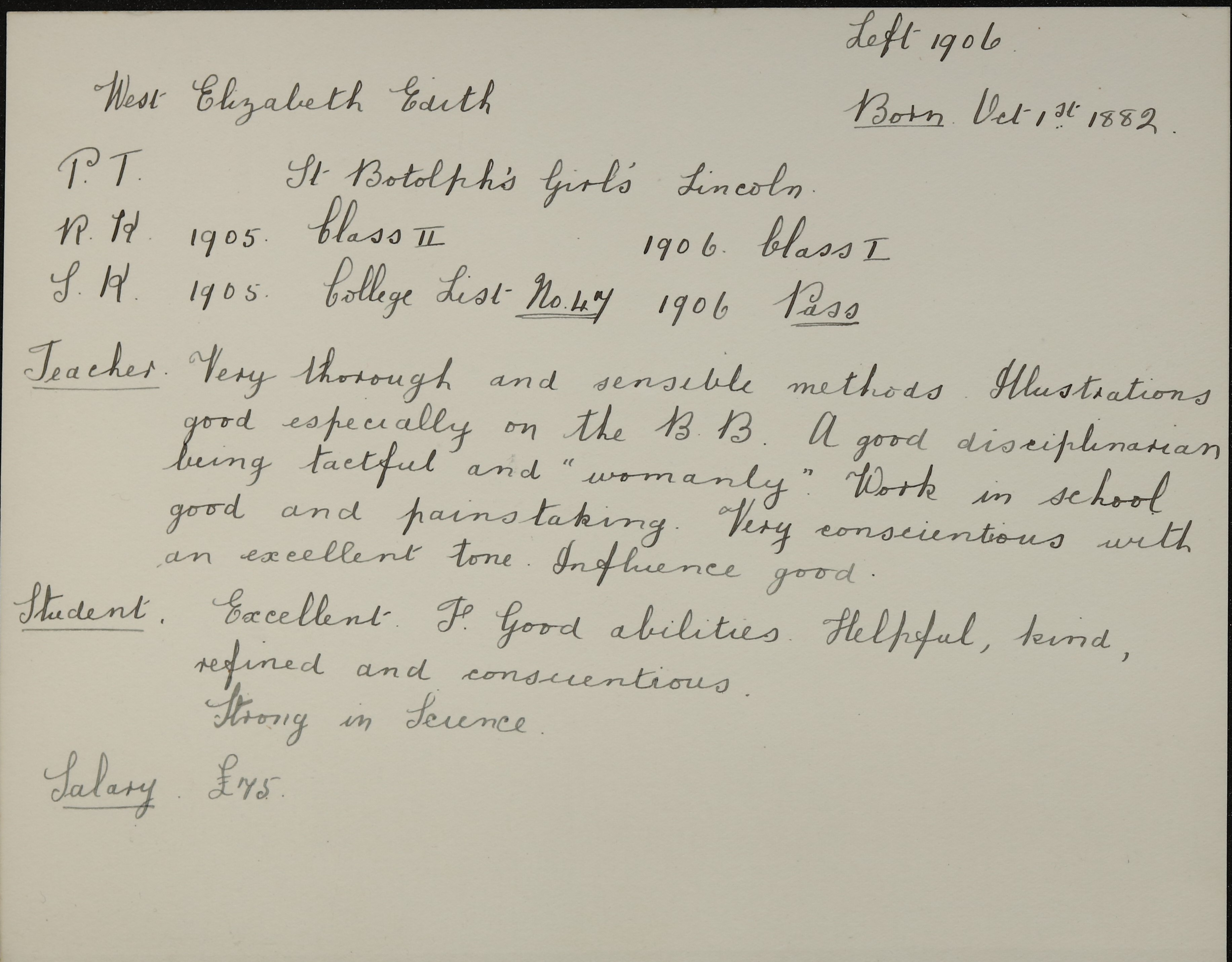 Born: 1 October 1882, Sleaford