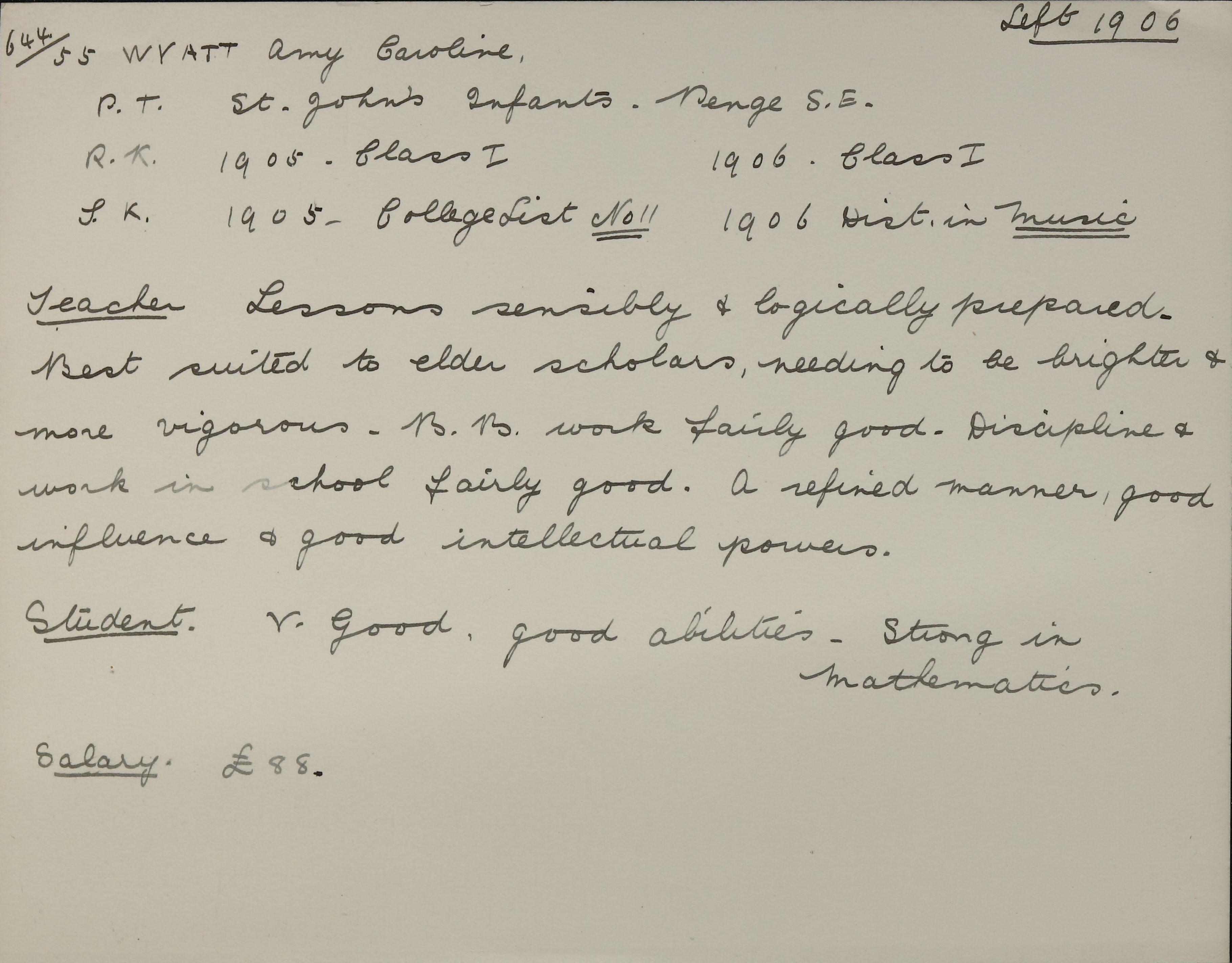 Sisters: Annie Gertrude Wyatt (b. 1882), Daisy Hilda Wyatt (b. 1886) [LDTC 1907], Violet Emma Wyatt (b. 1889)