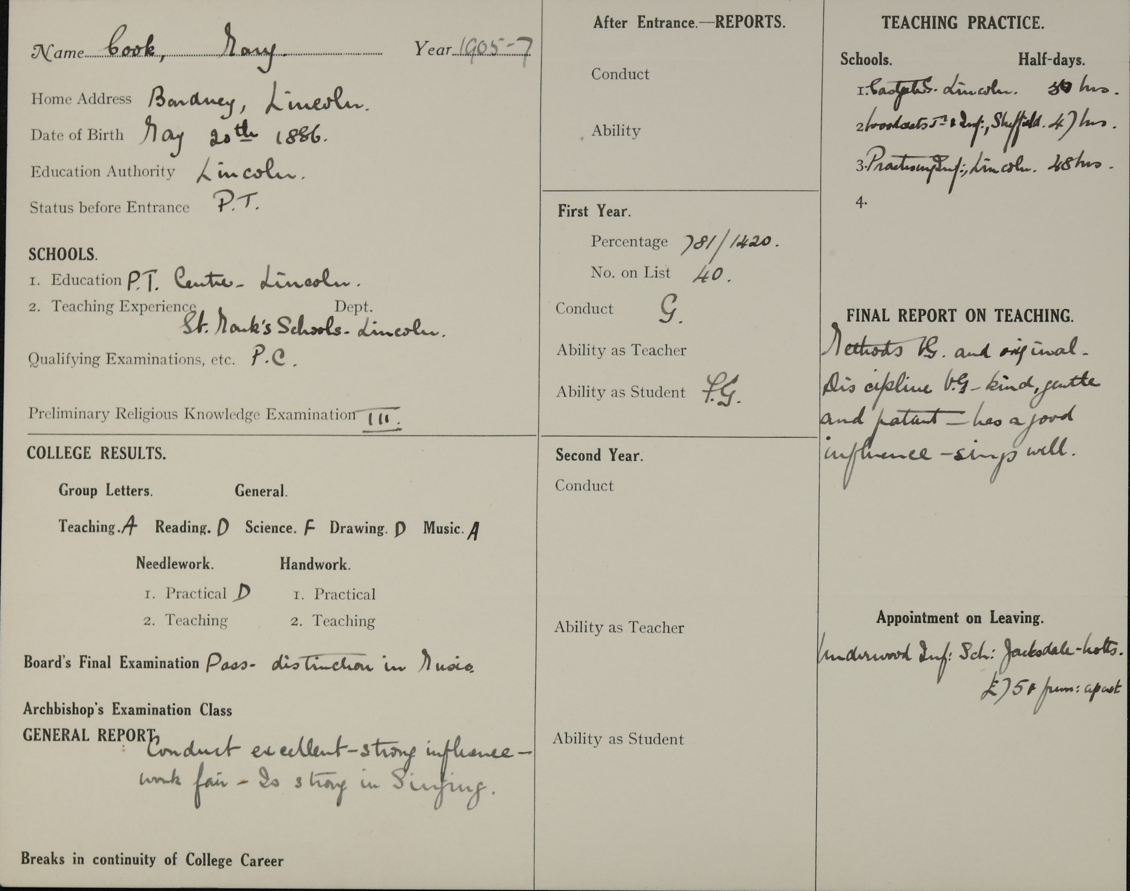 Born: 20 May 1886, Lincoln