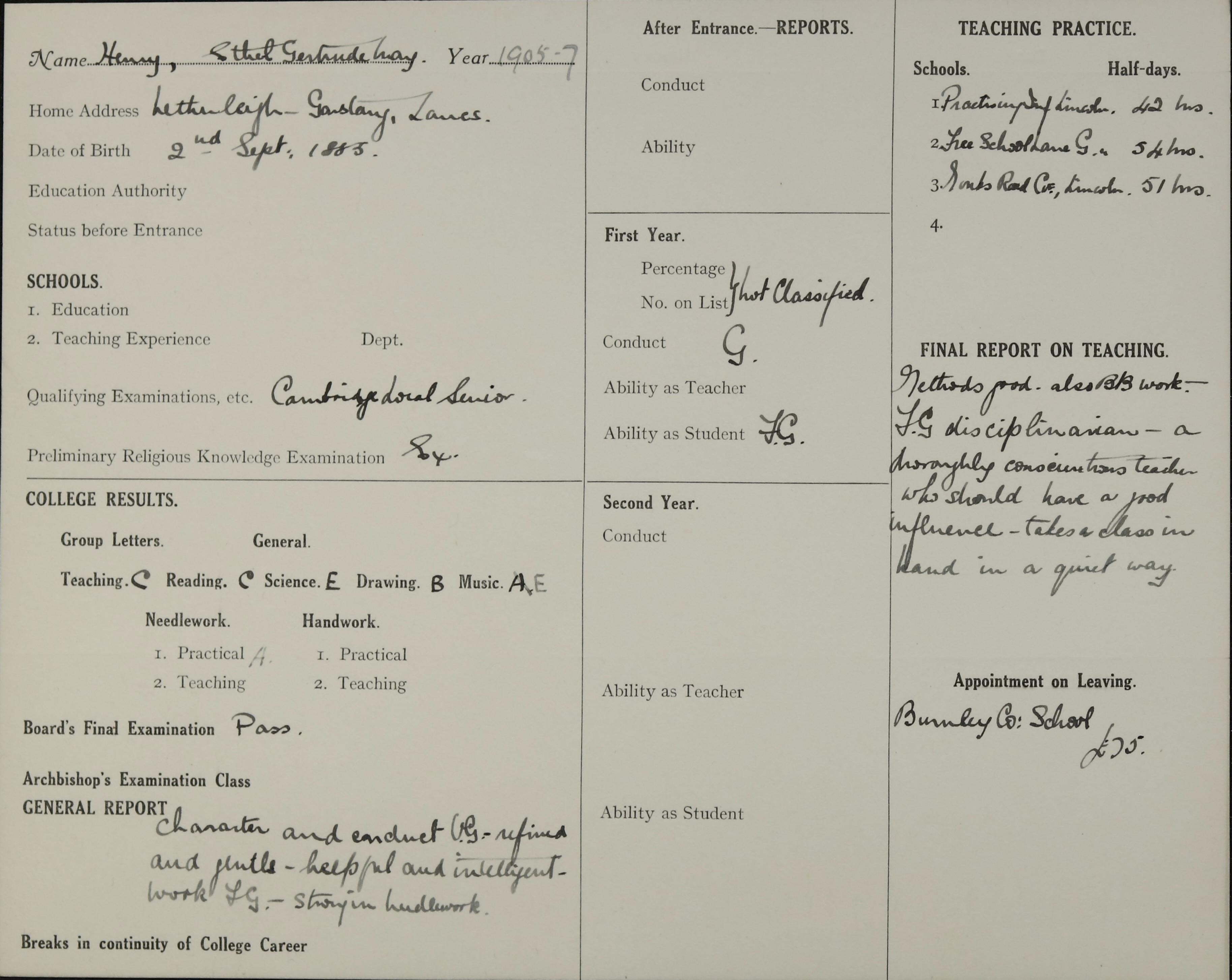 She is at ‘Windeyca’, Croston Road, Leyland, Preston. Her mother is an unlisted widow. Ethel is listed as ‘Teacher Elementary School Teacher’.