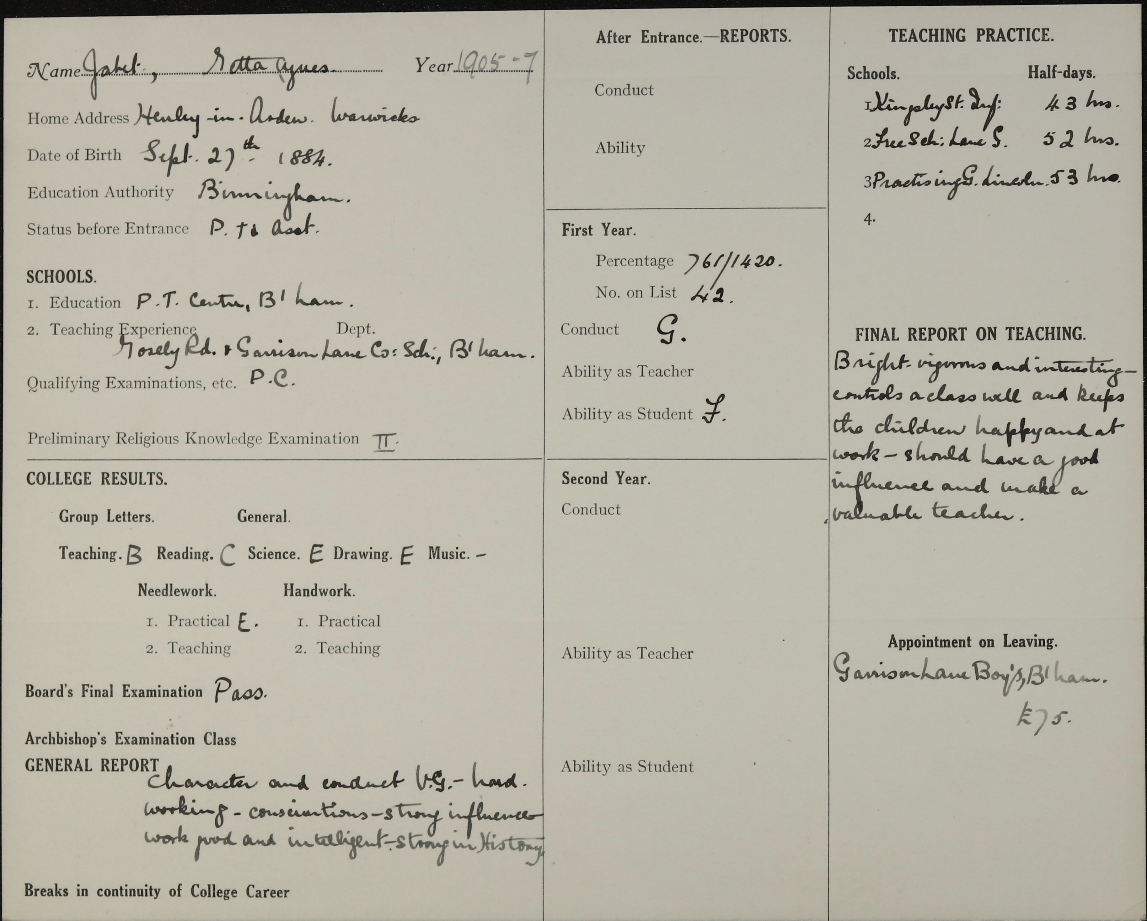 Appointed to St. Asaph's C. of E. School, Mixed Bow Street, Birmingham. Head Assistant.