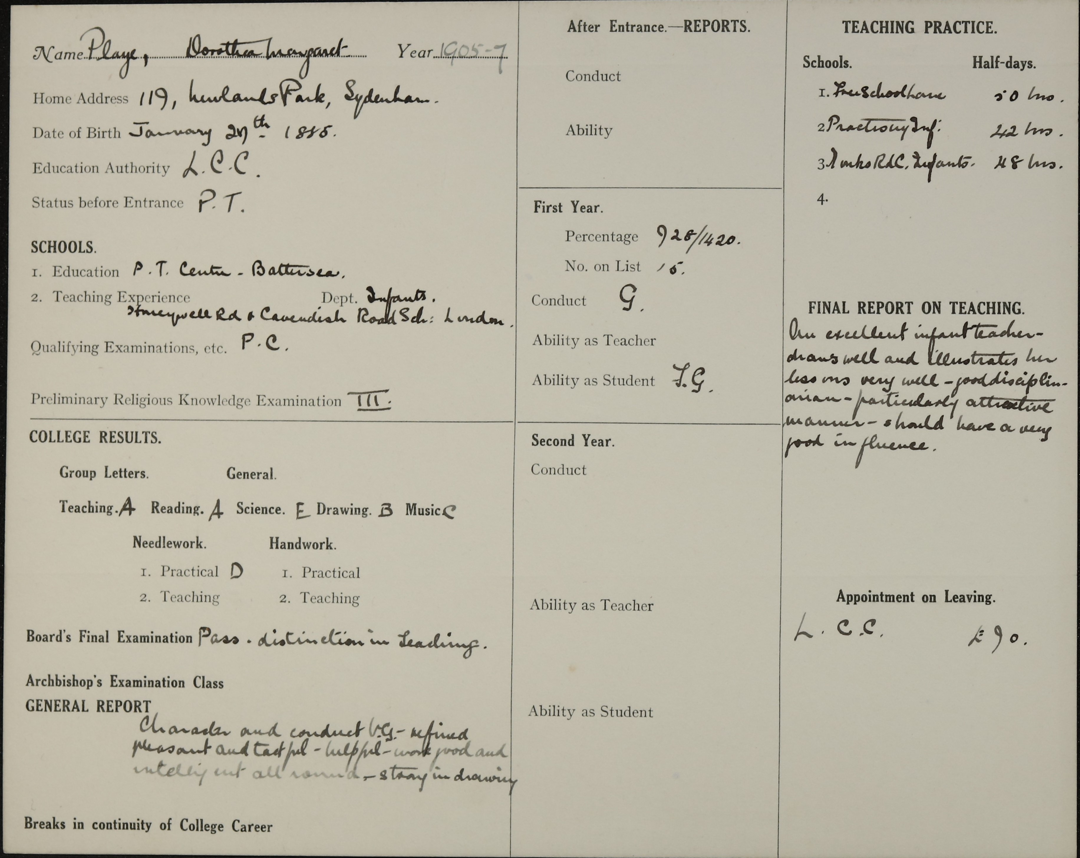 She is at Boarding House, 22 Crescent Grove, Clapham. Dorothea is a boarder and listed as ‘Teacher’. Joshua William McNerney (b. 1872), a boarder, is listed as ‘Journalist’.