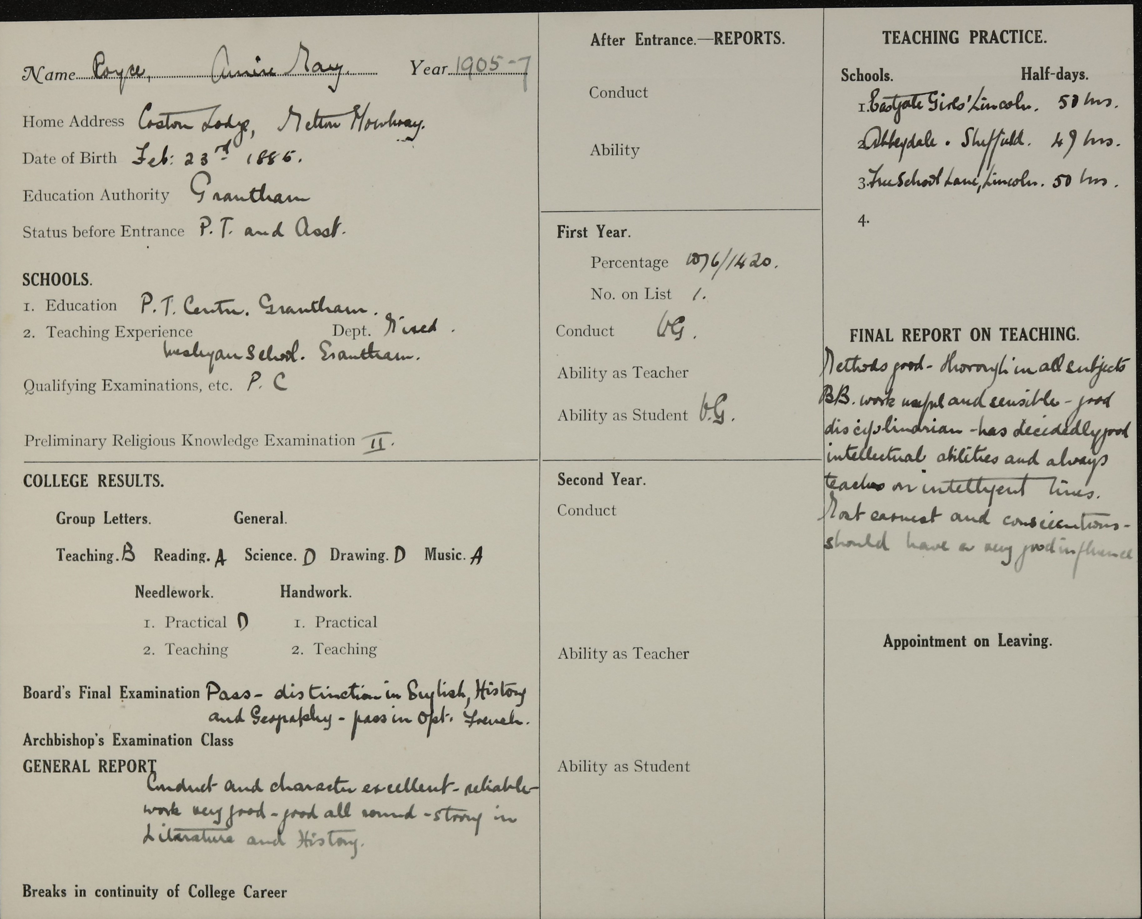 Born: 23 February 1885, Melton Mowbray