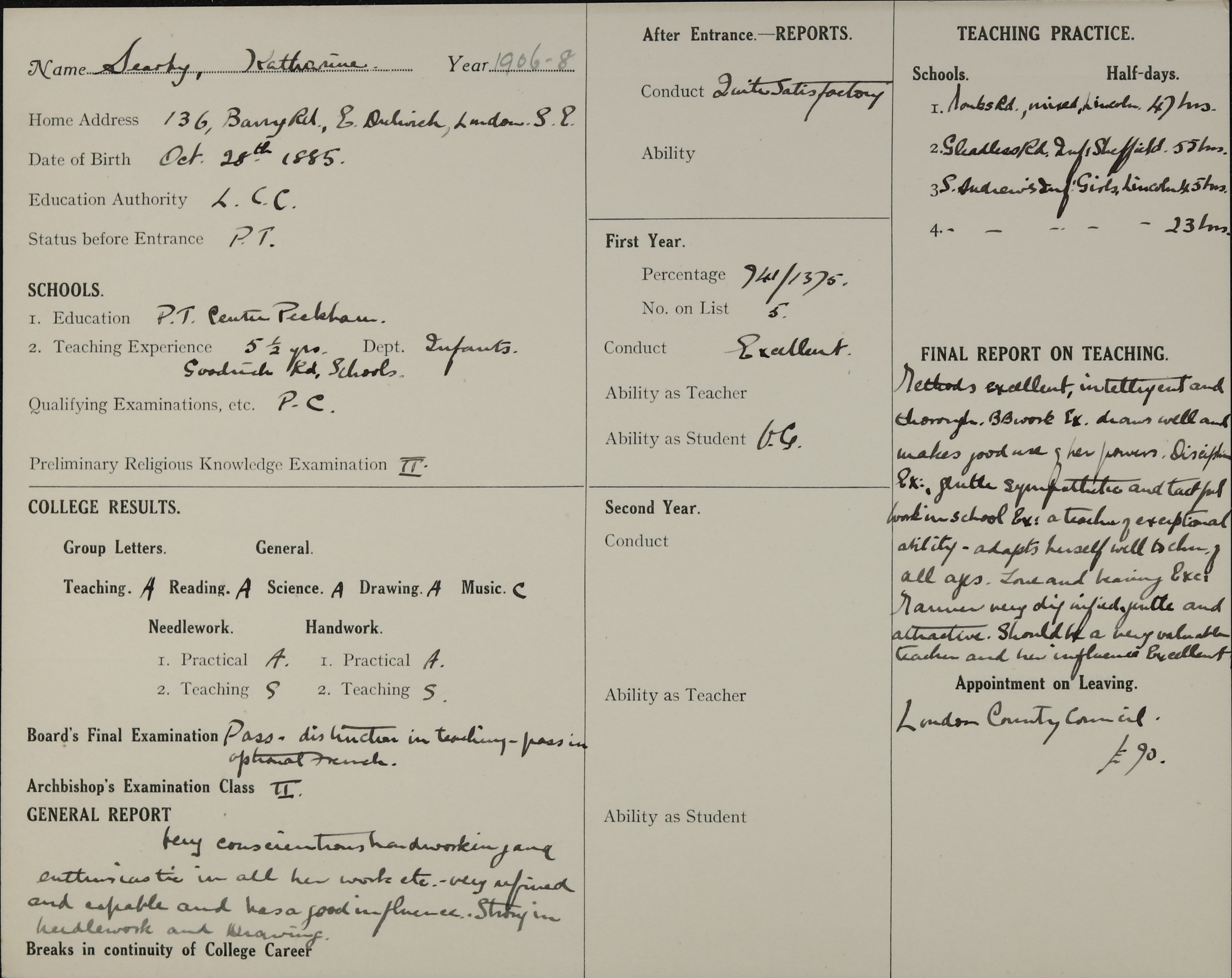 Born: 28 October 1885, Camberwell