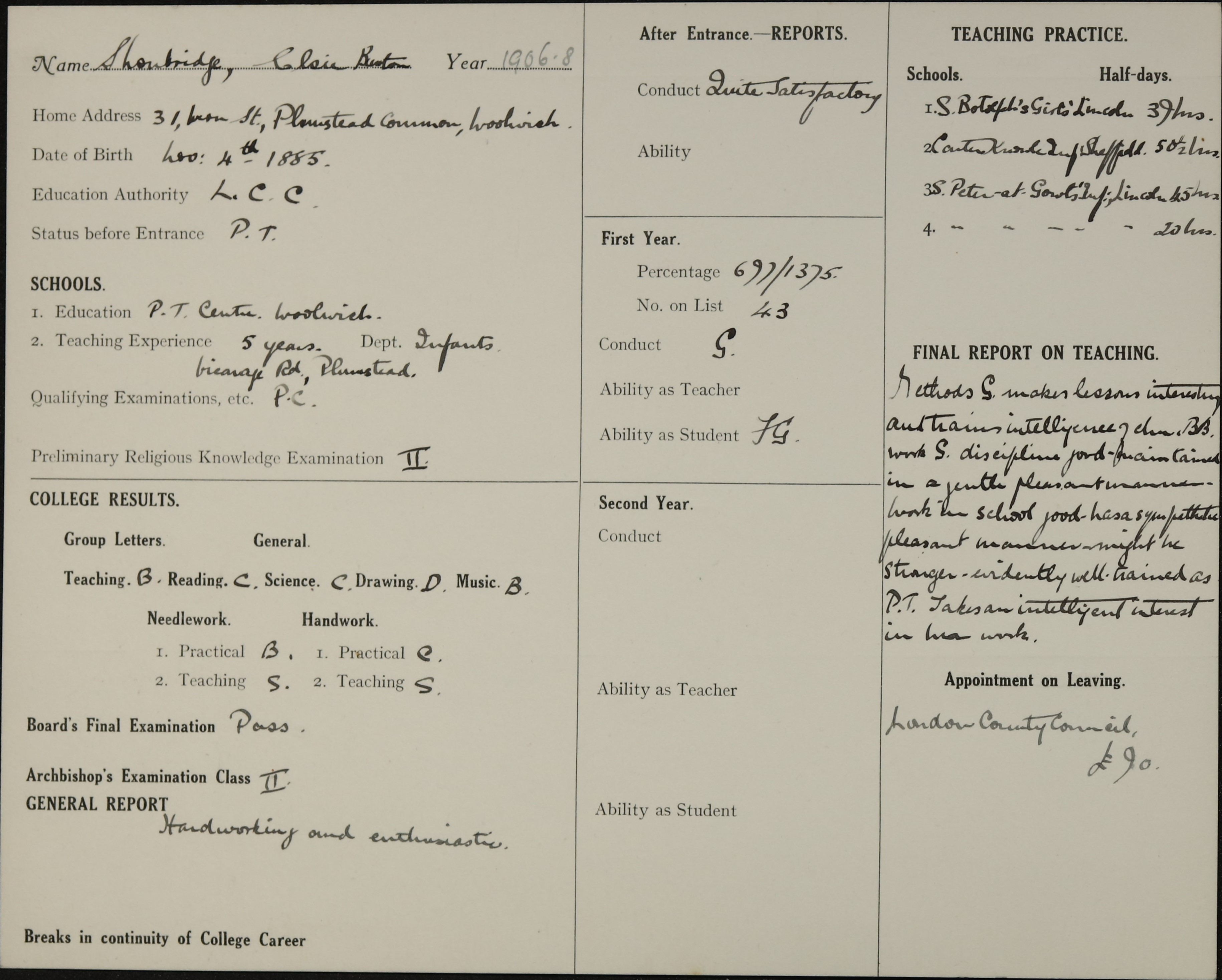 Appointed to L.C.C. Wood Street, Woolwich. £90.