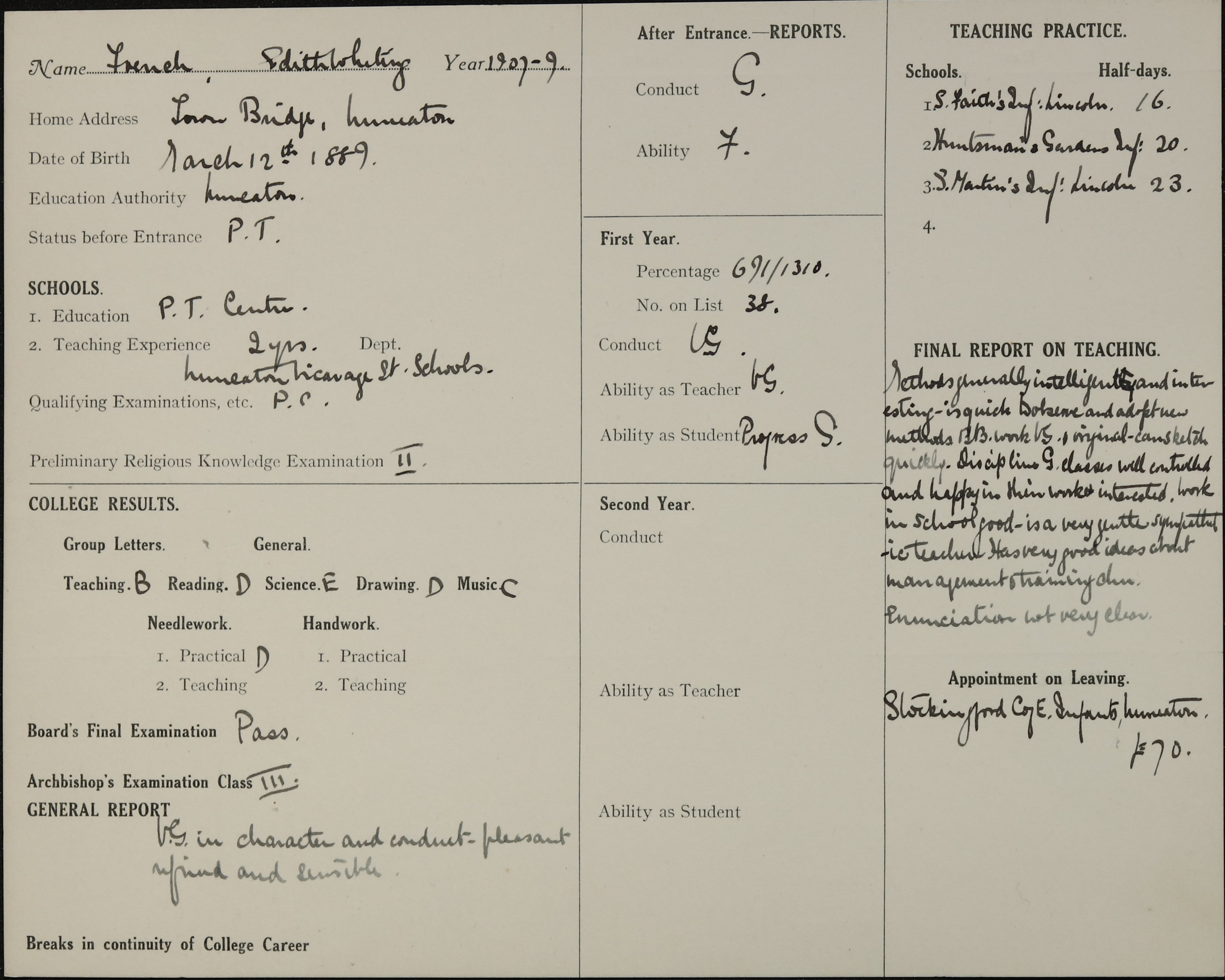 Appointed to Stockingford C. of E. Infants', Nuneaton. £70.