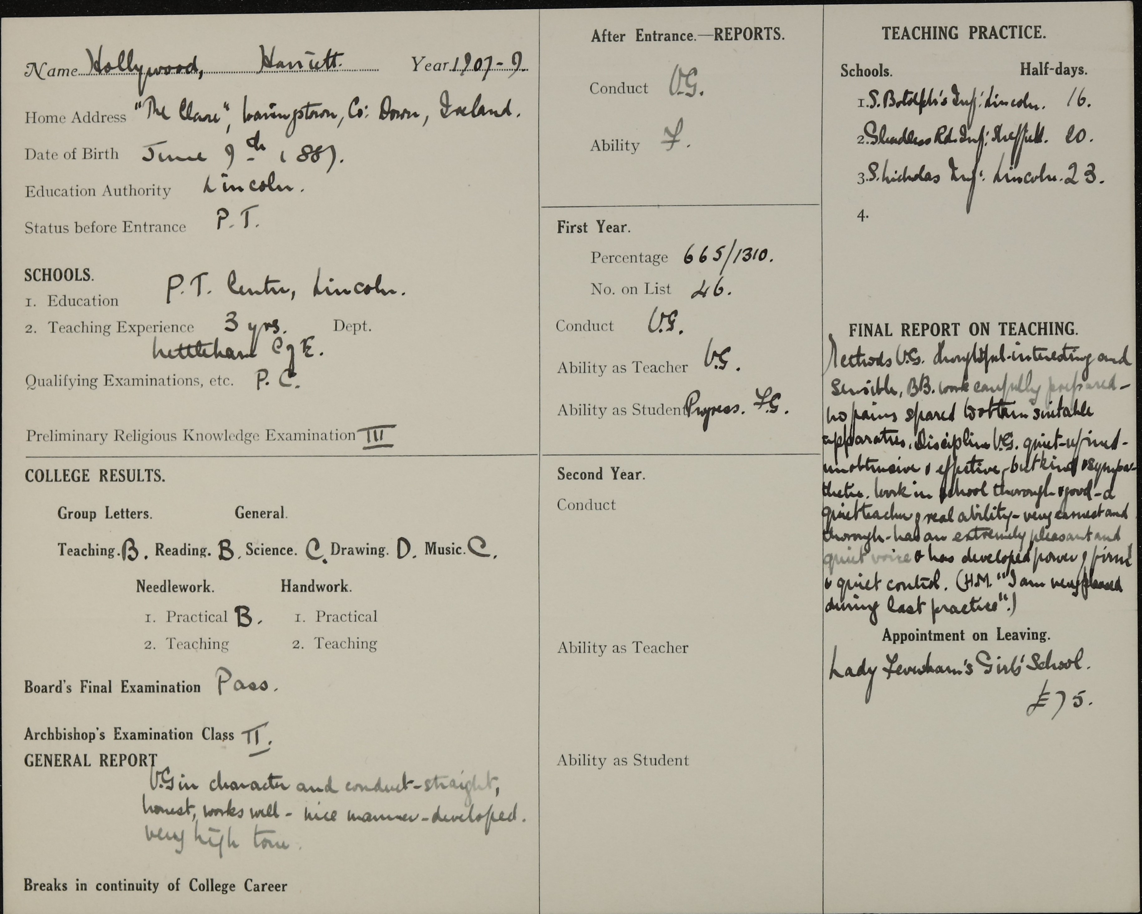 Born: 9 June 1887, Lurgan, County Down, Ireland