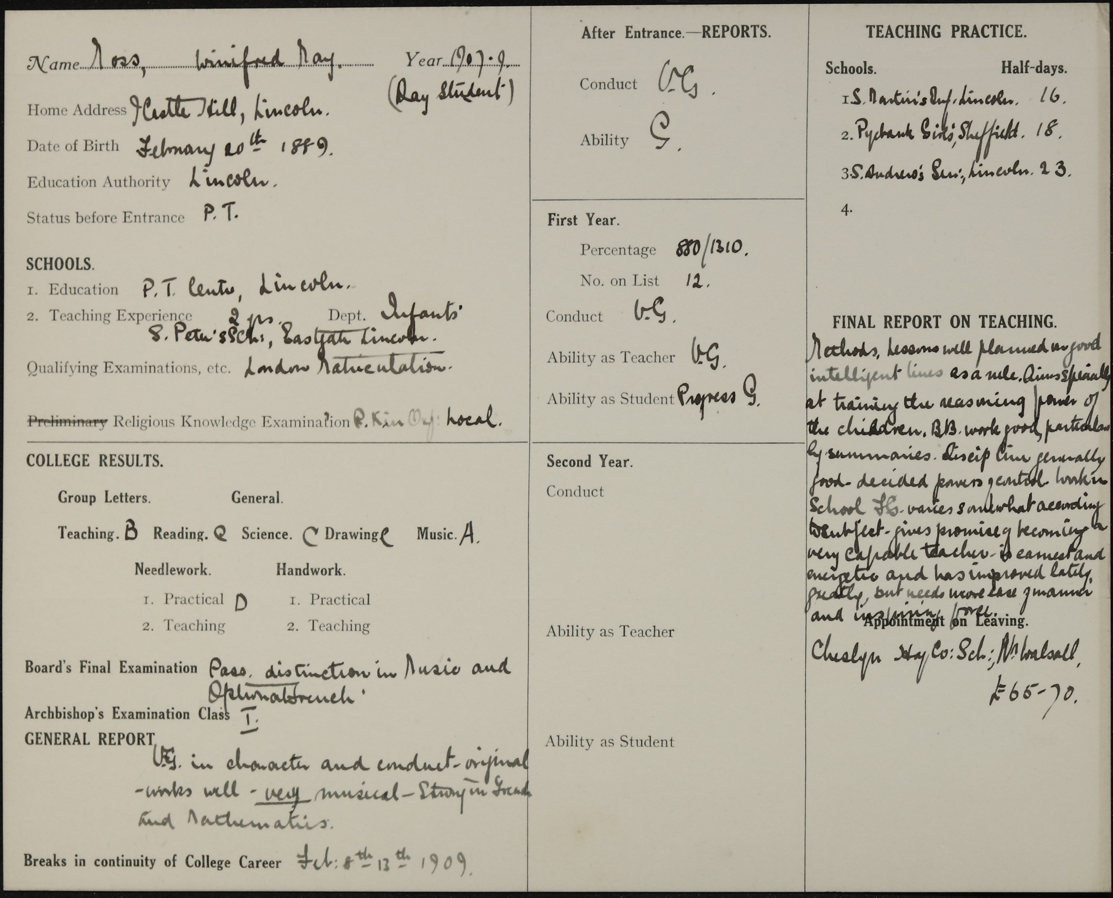 She is at 19 Vine Street, Lincoln. Her father is listed as ‘Lay Clerk Cathedral’. May, her mother and sisters, Ethel and Ivy, are unlisted.