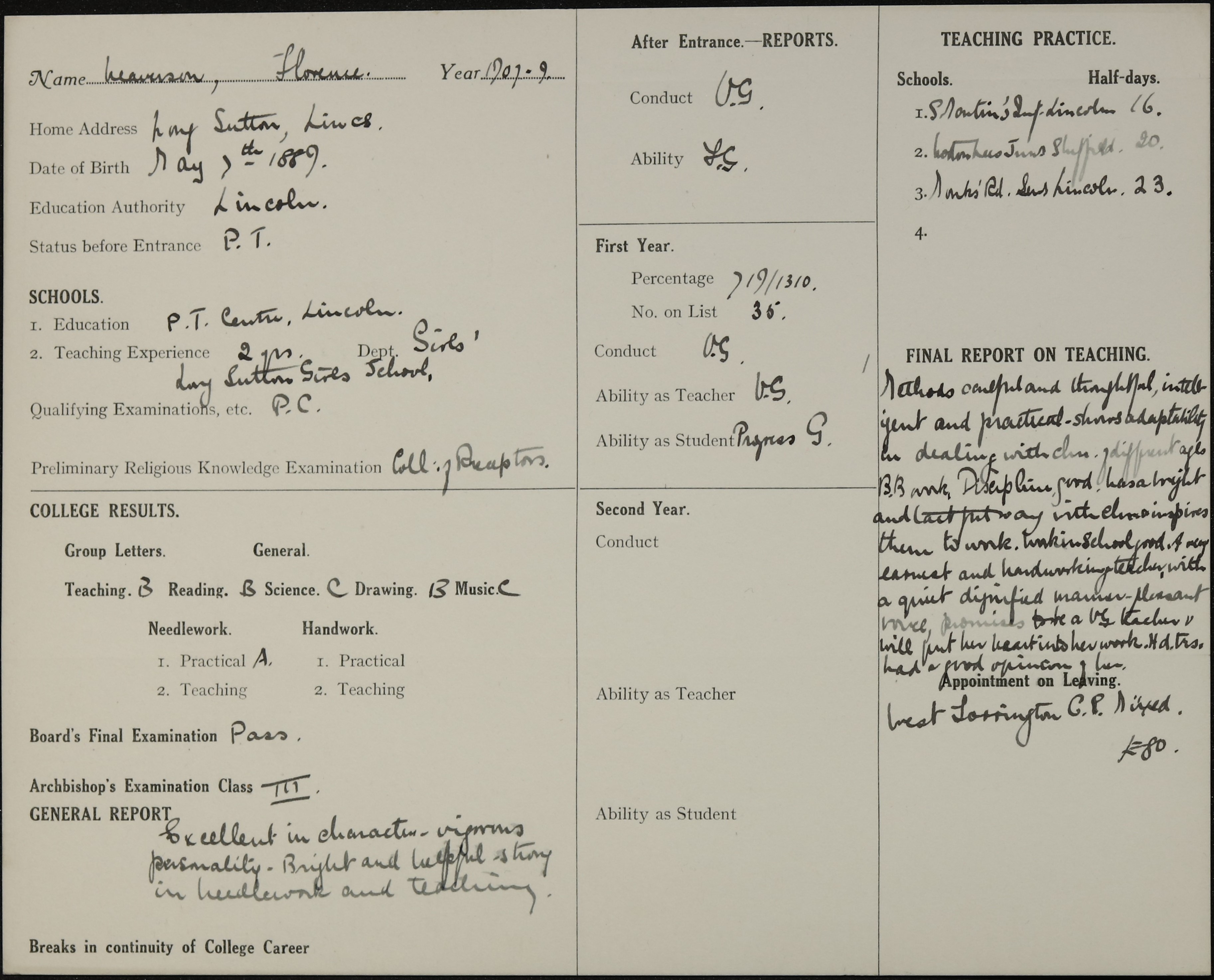 Sister-in-Law: Beatrice Bambridge (b. 1889) [LDTC 1909] - Married her brother Ernest.