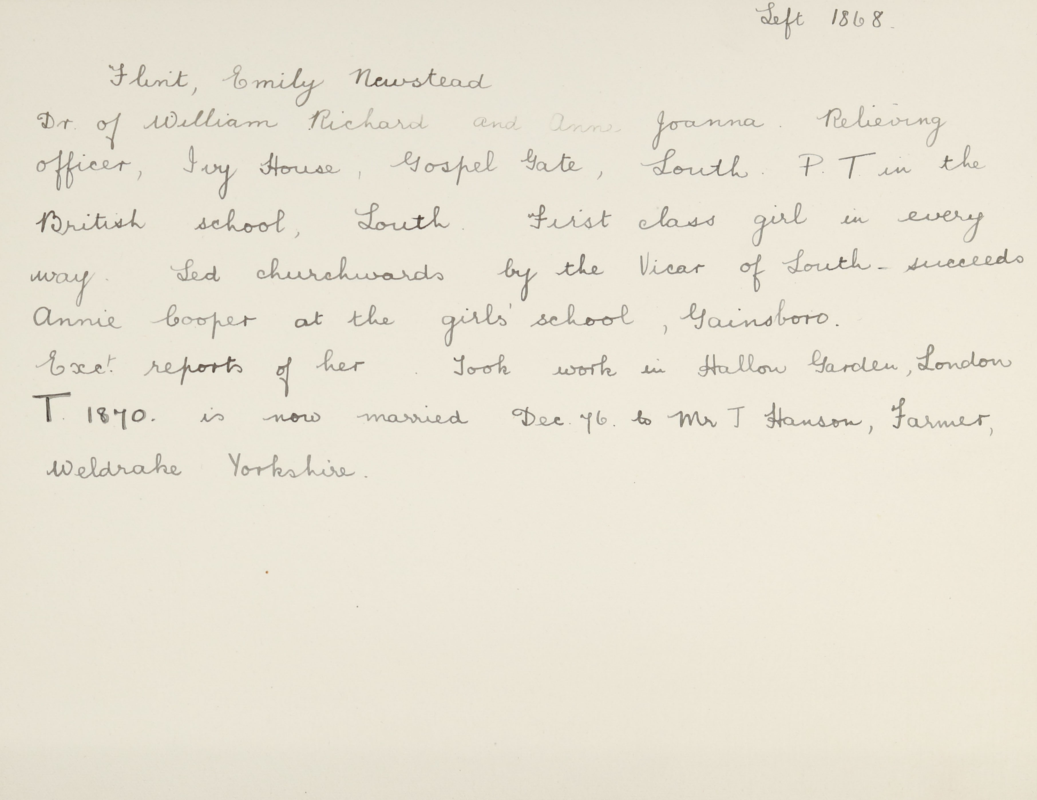 Mother: Anne Joanna Flint (b.1824)