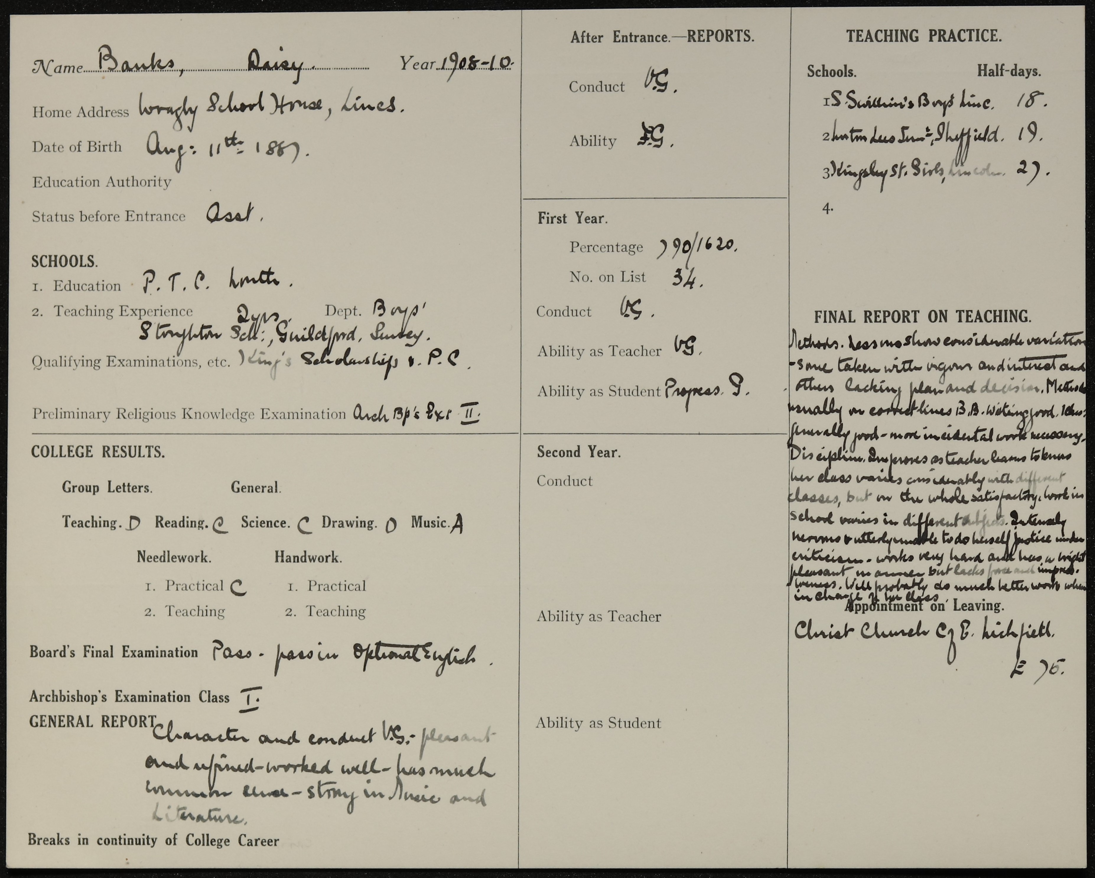 She is at Church Street, Wragby, Horncastle. Her father is listed as ‘National Schoolmaster’. Daisy, her mother and sister, Dorothy, are unlisted.