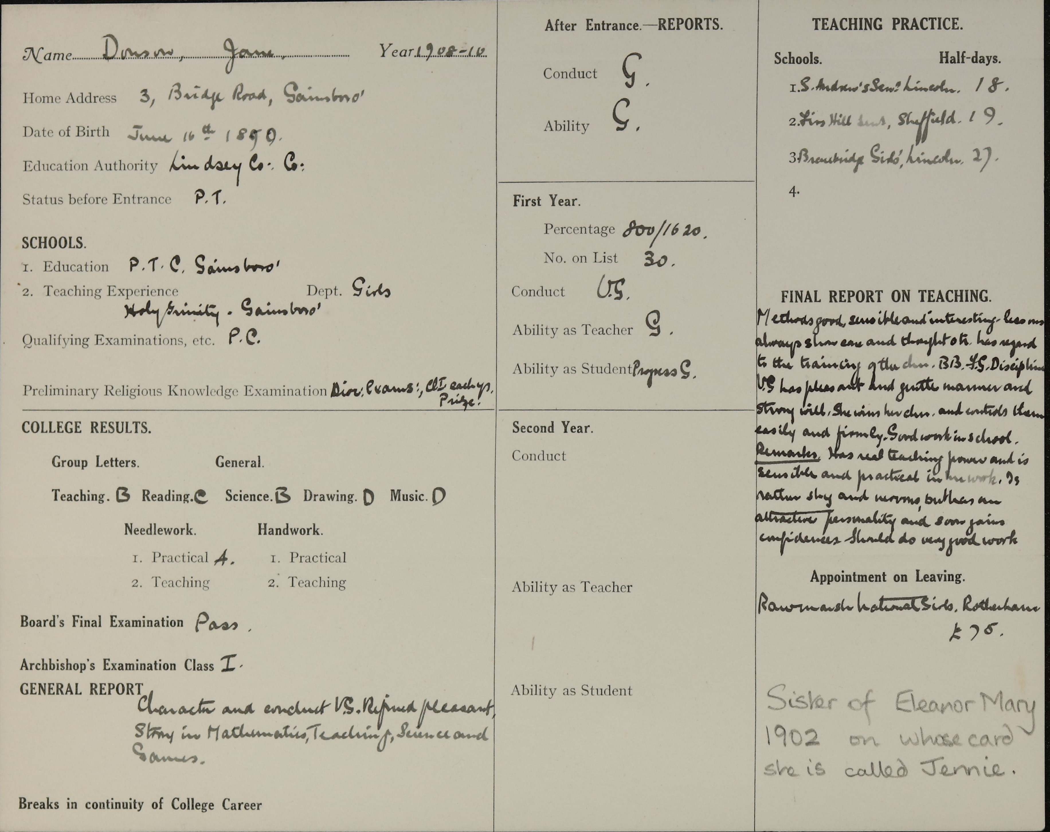 Sisters: Eleanor Mary Donson (b. 1881) [LDTC 1902]