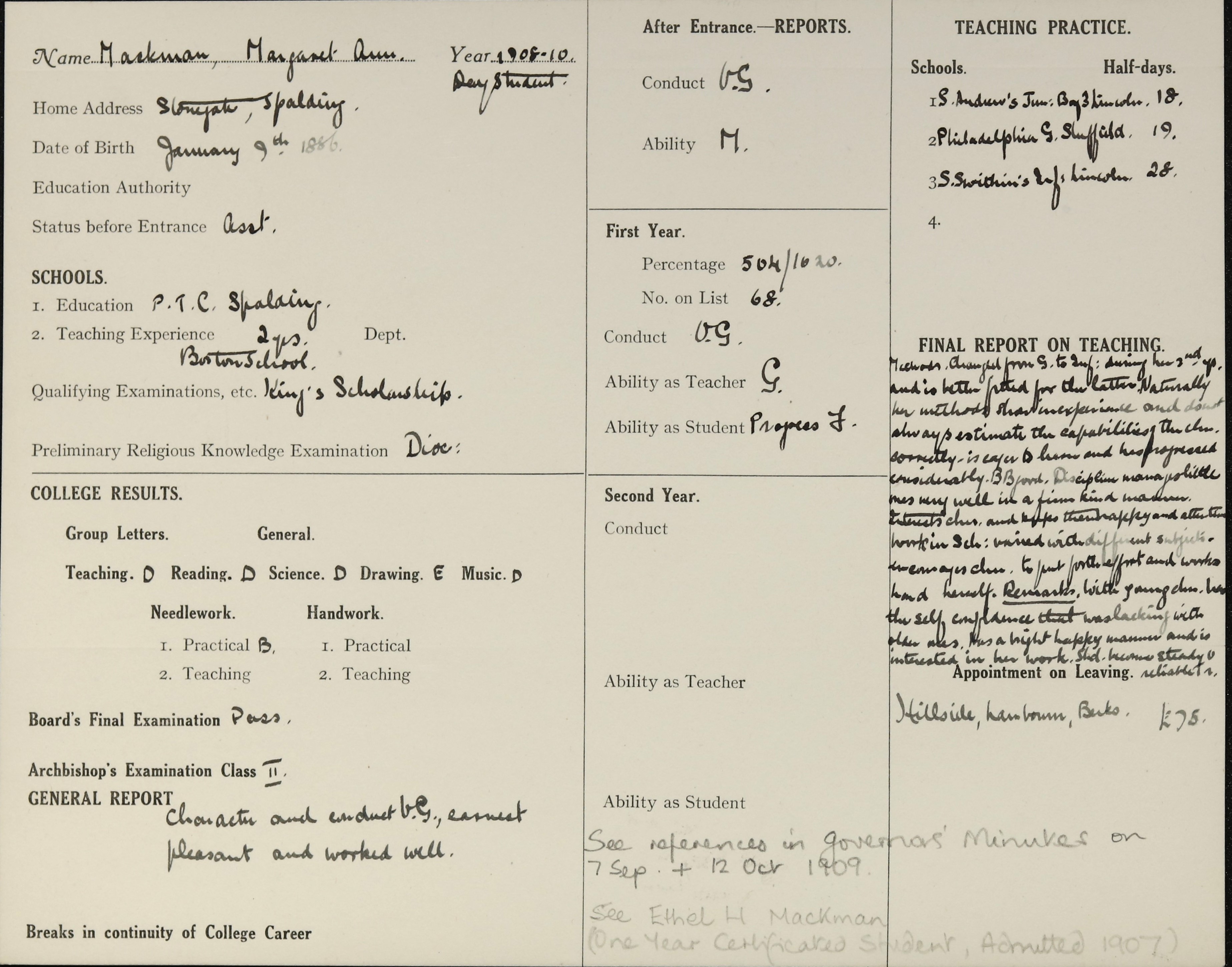 Sisters: Alice Mary Mackman (b. 1877), Ethel Howard Mackman (b. 1879) [LDTC 1908], Esther Rice Mackman (b. 1878), Amelia Joyce Mackman (b. 1880), Dora Ellen R Mackman (b. 1882)