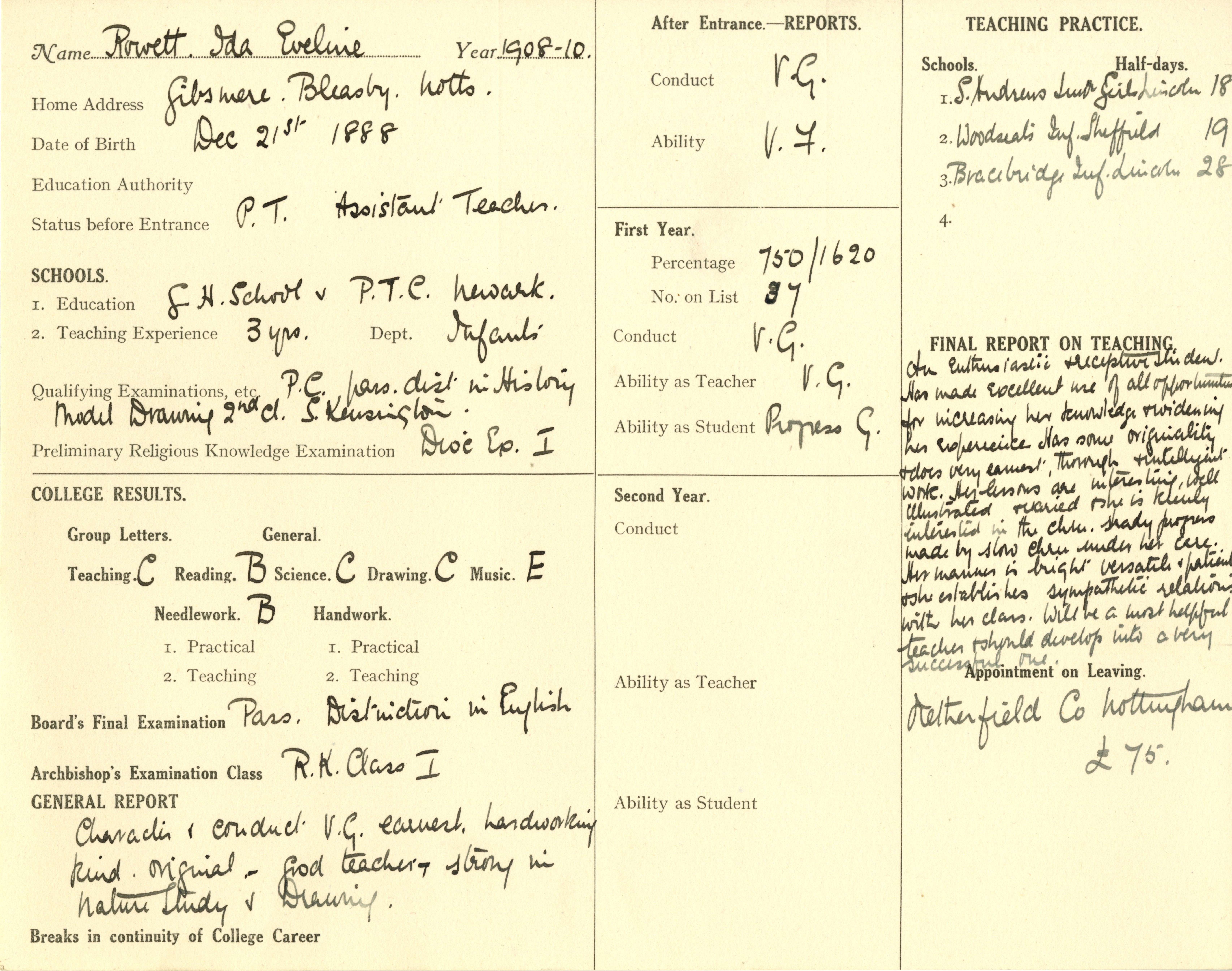 She is at Gibsmere, Bleasby. Her father is listed as widow and ‘Farm Labourer’. Ida is listed as ‘Trained Certificated Teacher’.