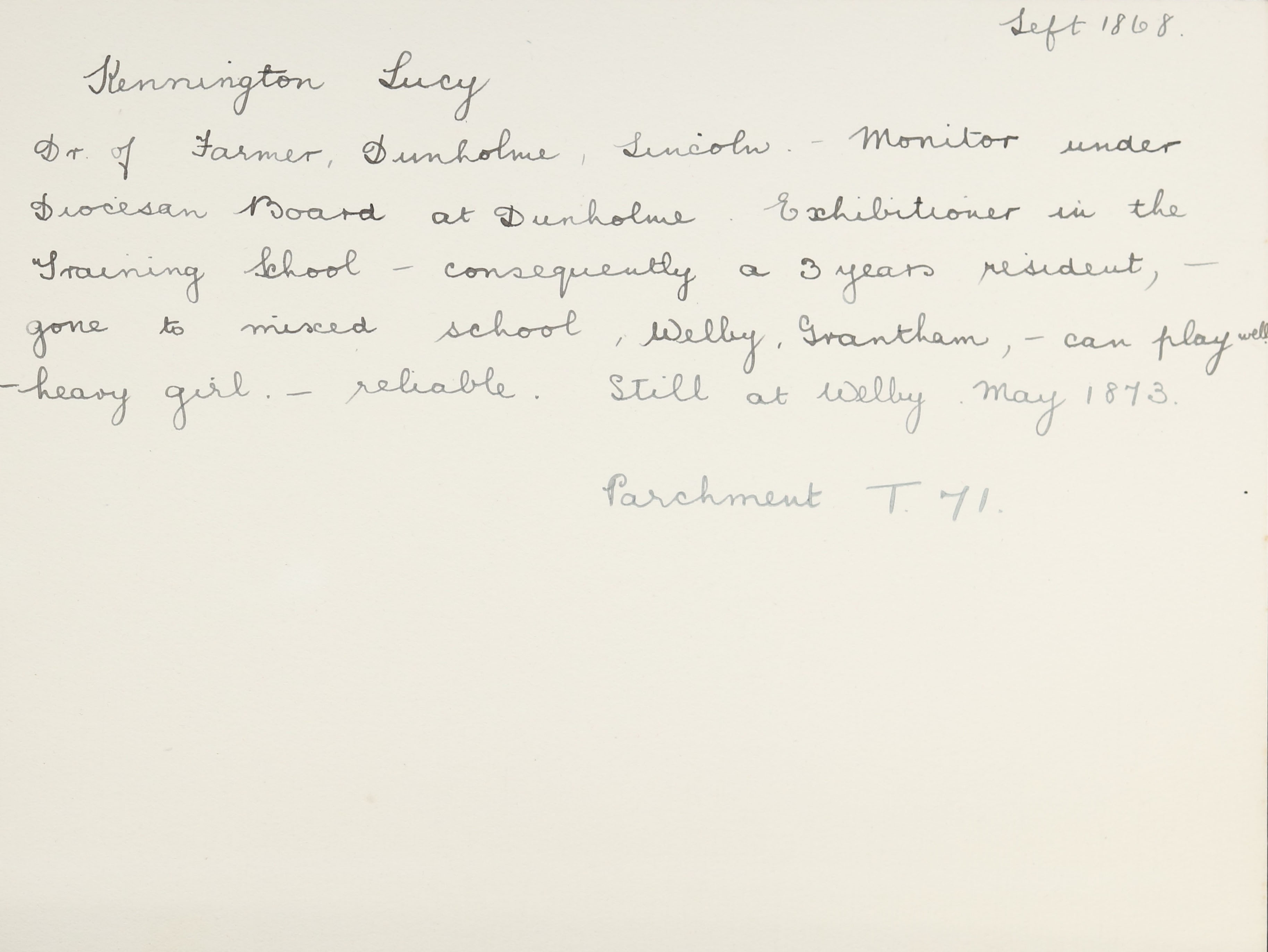 She is Cottagers House, Lincoln Lane, Dunholme. Her father is listed as ‘Cottager’. Lucy and her mother are unlisted.