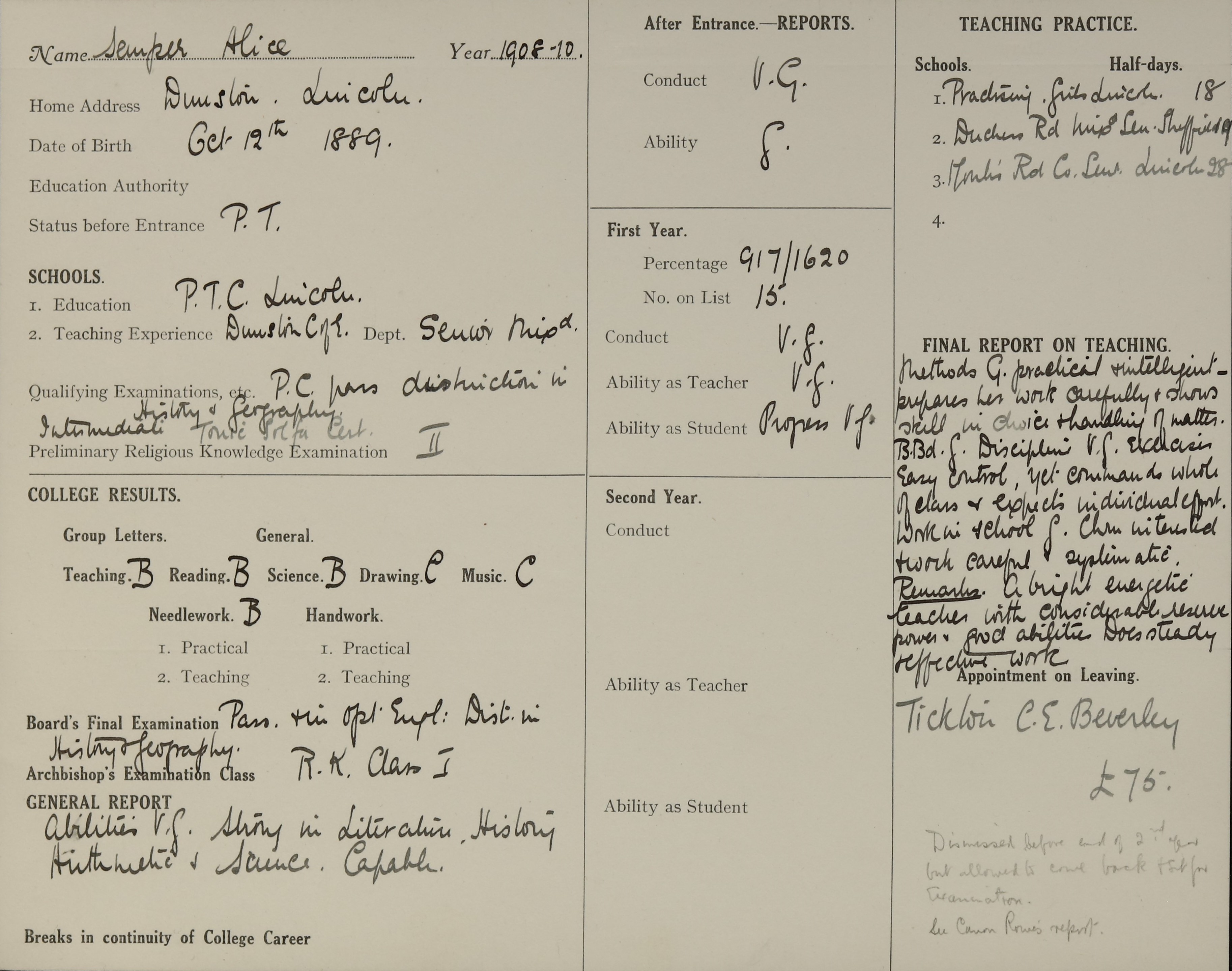 Born: 12 October 1889, Lincoln