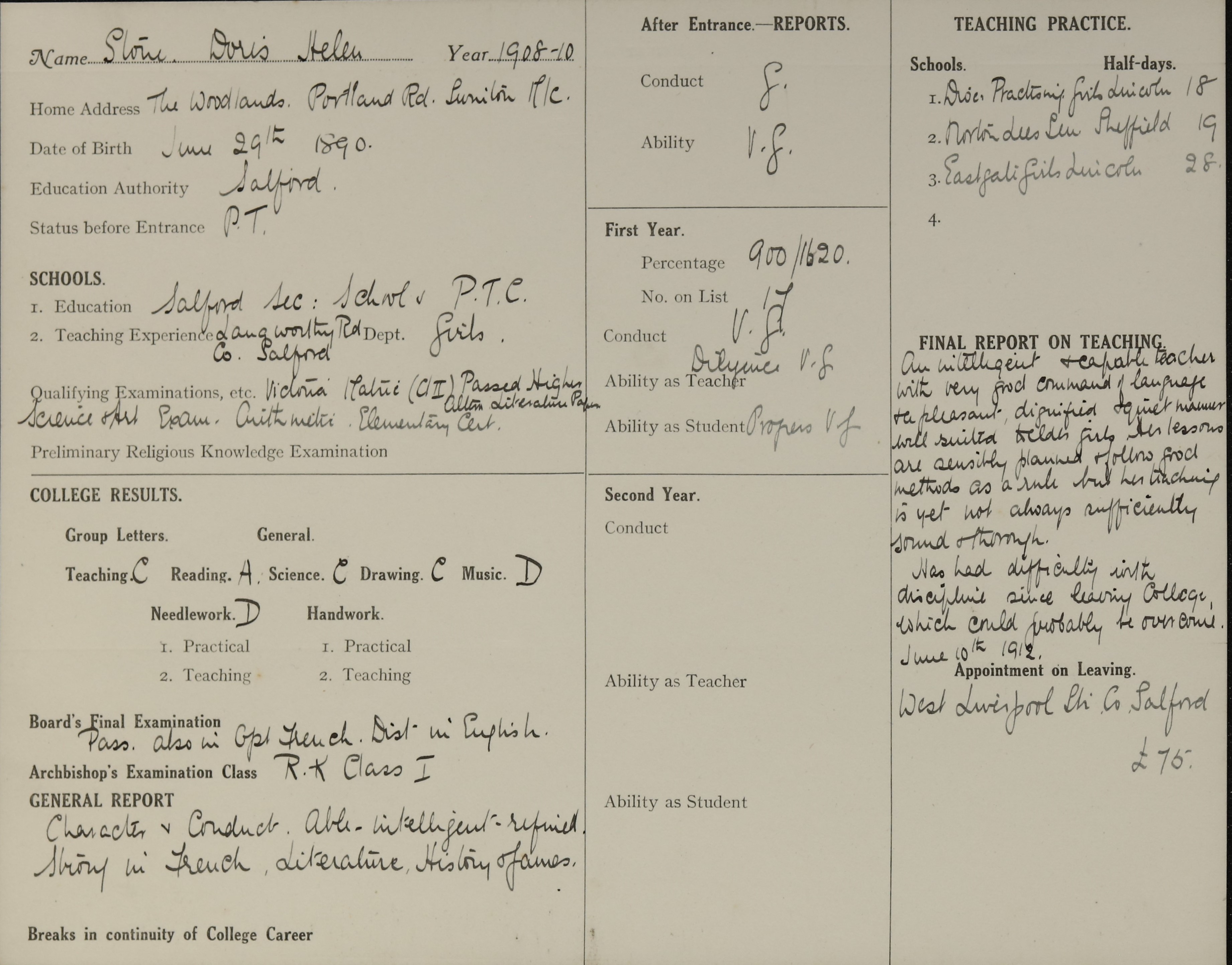 She is at 13 Carlton Road, Pendleton. Her father is listed as ‘School Master’. Doris, her mother and siblings (Gladys, Phyllis and George) are unlisted.