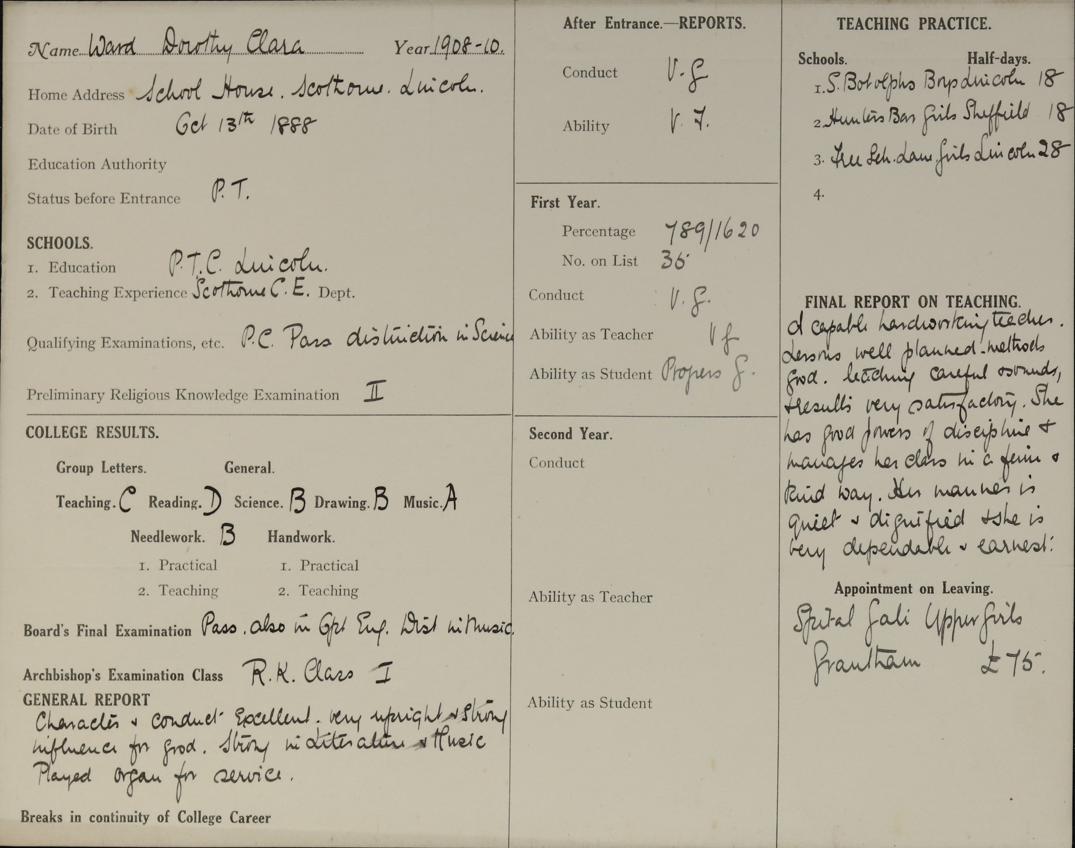 Born: 13 October 1888, Lincoln