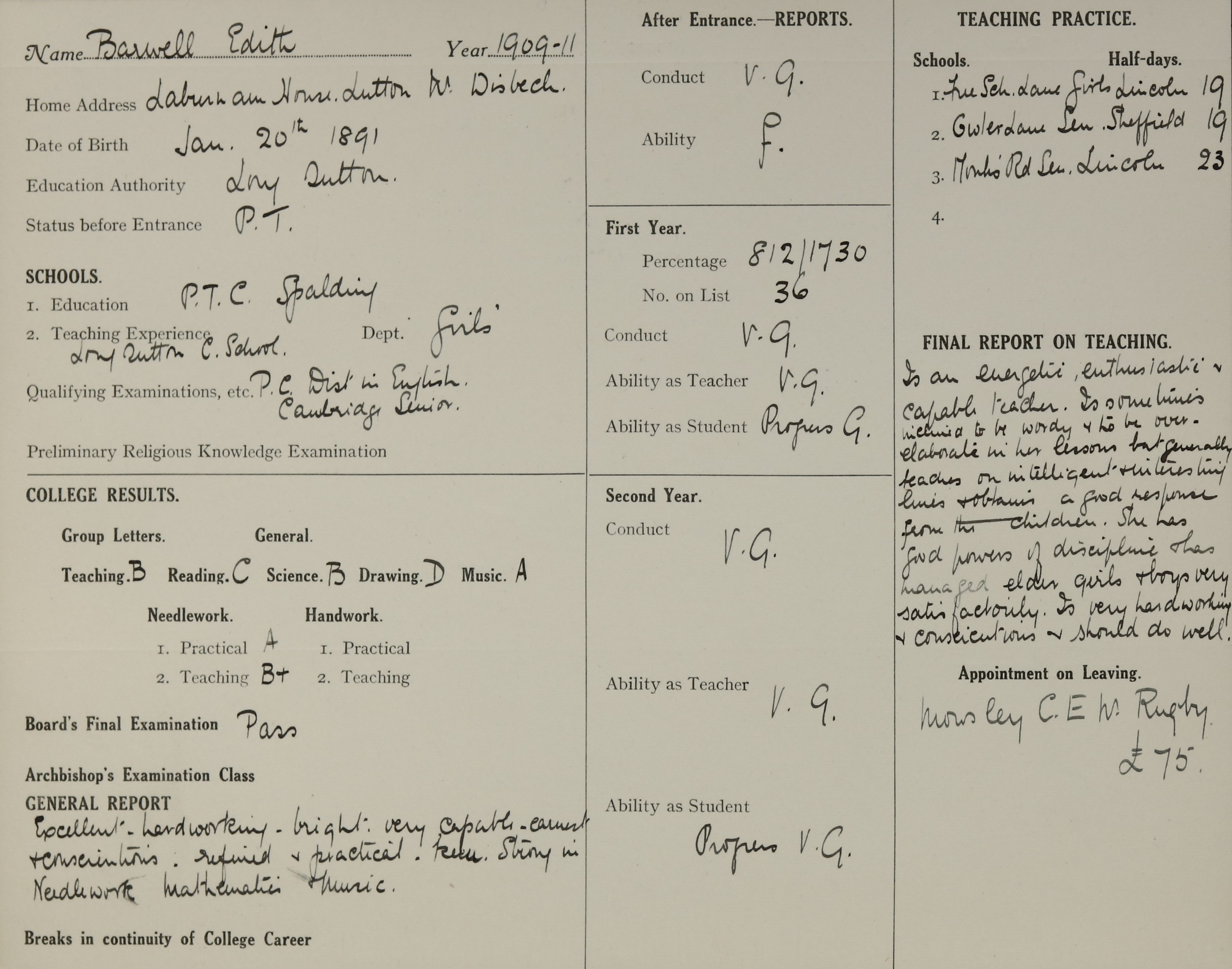 She is at Lutton, Holbeach. Her father is listed as ‘Farmer and Thrasing Machinist’. Edith, her mother, and siblings (Agnes, Winifred, Ralph and Mabel) are unlisted.