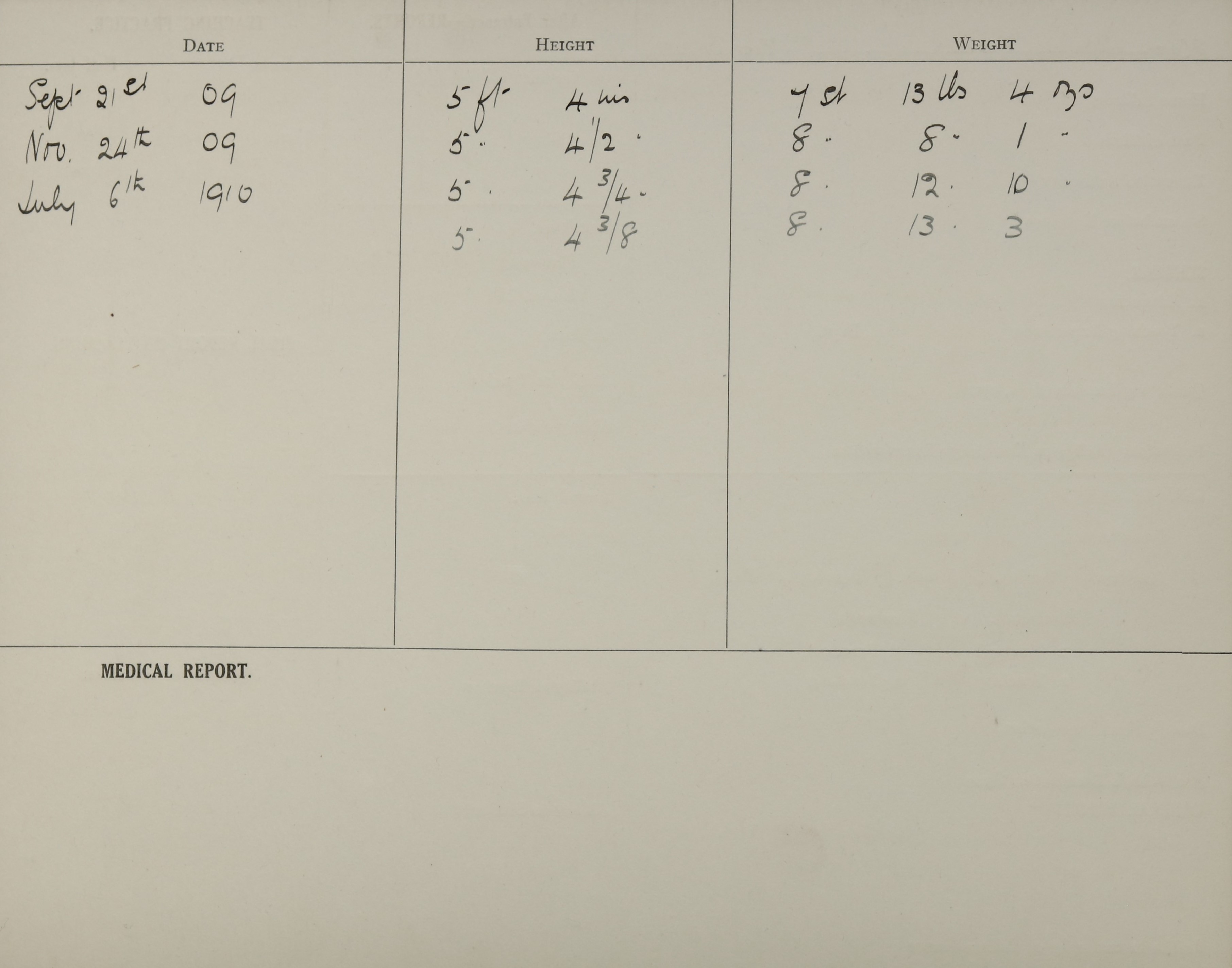 She is at 1 Wilton Road, Pendleton. Her father is listed as ‘Fruiter, Fish, Game & Poultry Shop Keeper’. Her sisters, Clara and Mary, and her aunt, Mary Humpage (b. 1861), are listed as ‘Fruiter’s Assistant’. Her brother, Percy, is listed as ‘Clerk in Overseer’s Office’. Her sister, Mildred, is listed as ‘Elementary School Teacher’. Gladys, her mother and siblings (Amy, Gertrude, Elizabeth, Harriet and Margaret) are unlisted. There is a servant, William Jones (b. 1882), listed as ‘Fruiter’s Carter’.