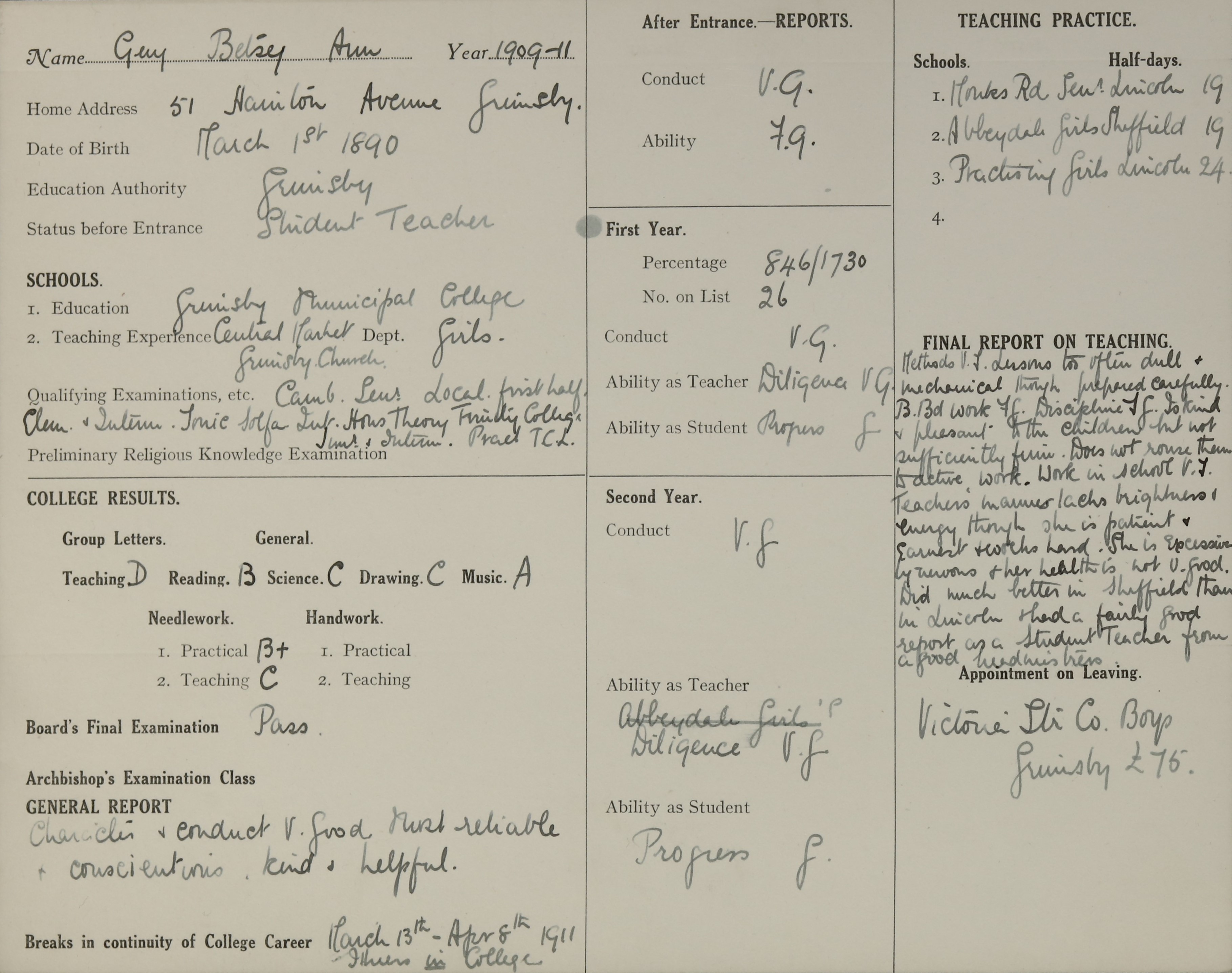 She is at Clifton Station Road, North Thoresby. Ruth Goulding (b. 1869) is listed as a widow and ‘Private Means’. Betsy is listed as ‘School Teacher’.