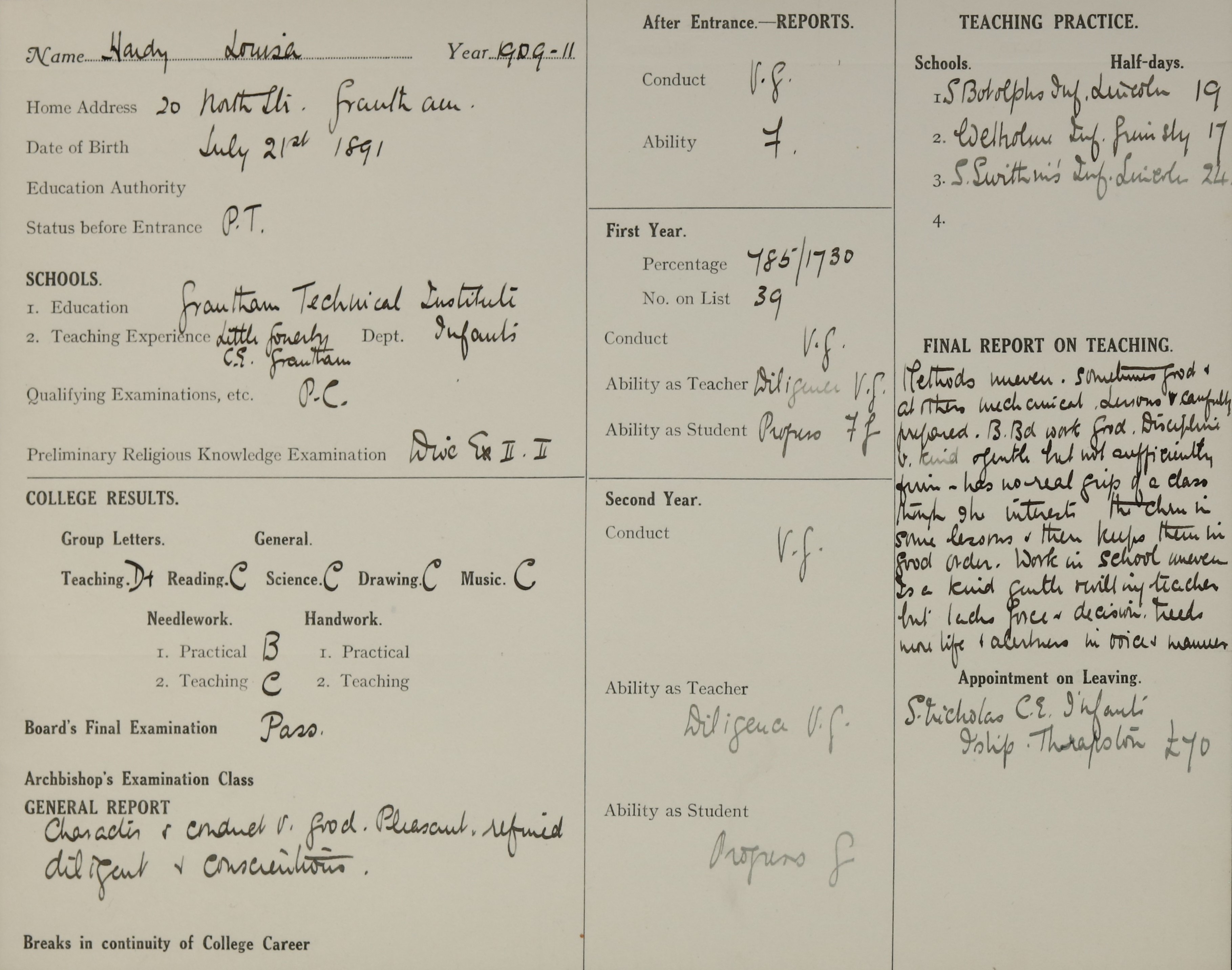 She is at 20 North Street, Little Gonerby. Her grandmother, Catherine Hardy (b. 1832) is an unlisted widow. Her aunts, Catherine E Hardy (b. 1854) and Martha Hardy (b. 1864), are listed as ‘Dressmakers’. Louisa is unlisted.