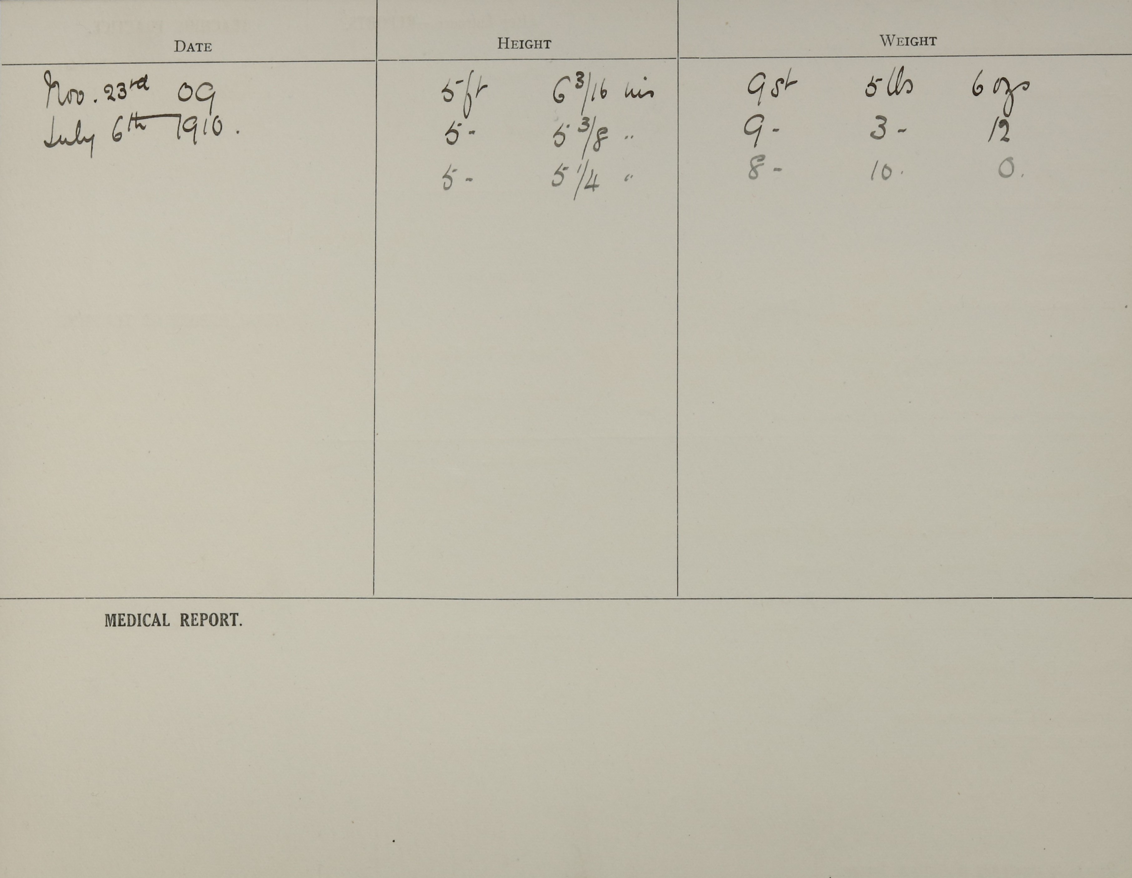 Qualification: Matric. I., 1909, P.C Dist. in. History, 1908.