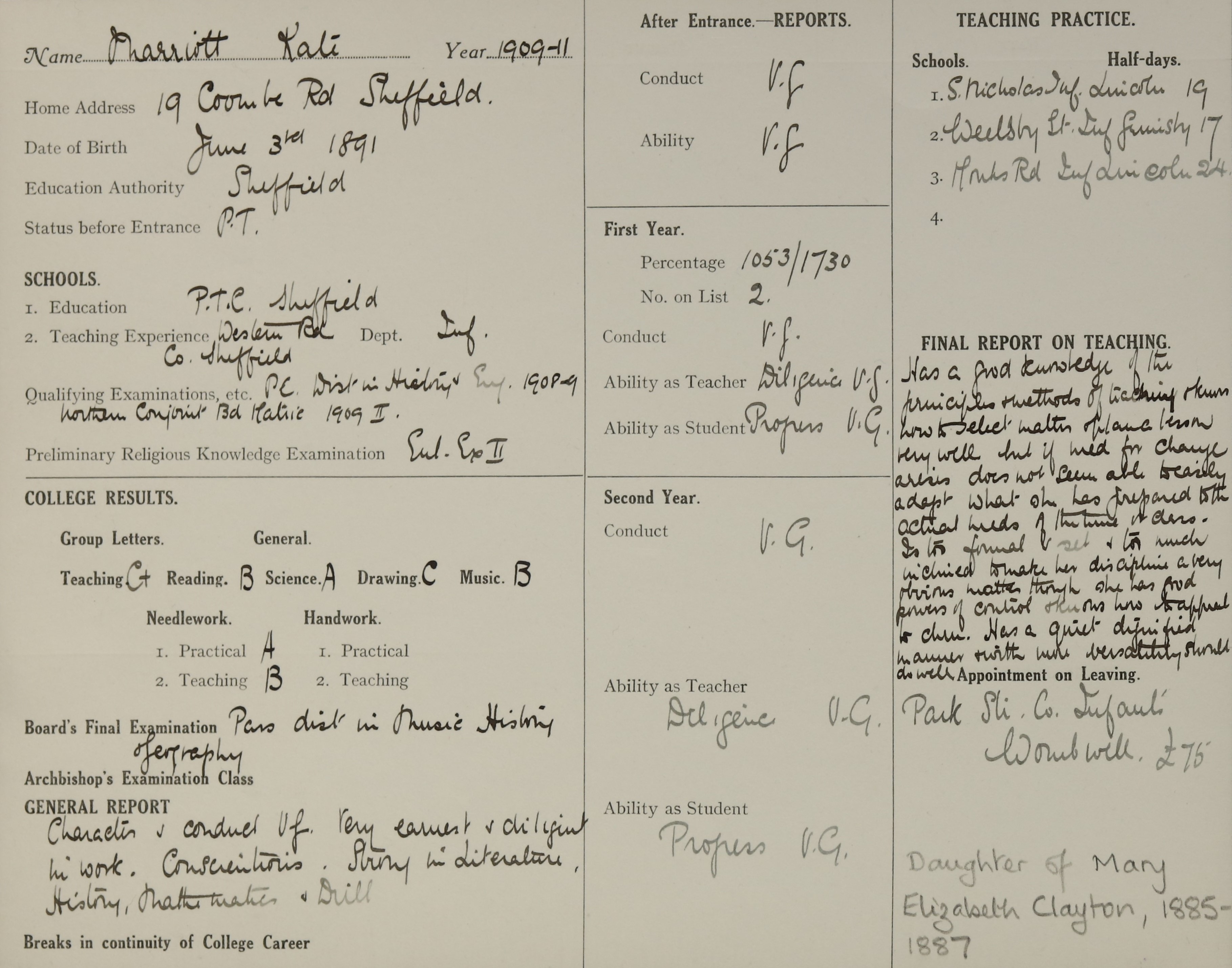 Born: 3 June 1891, Sheffield