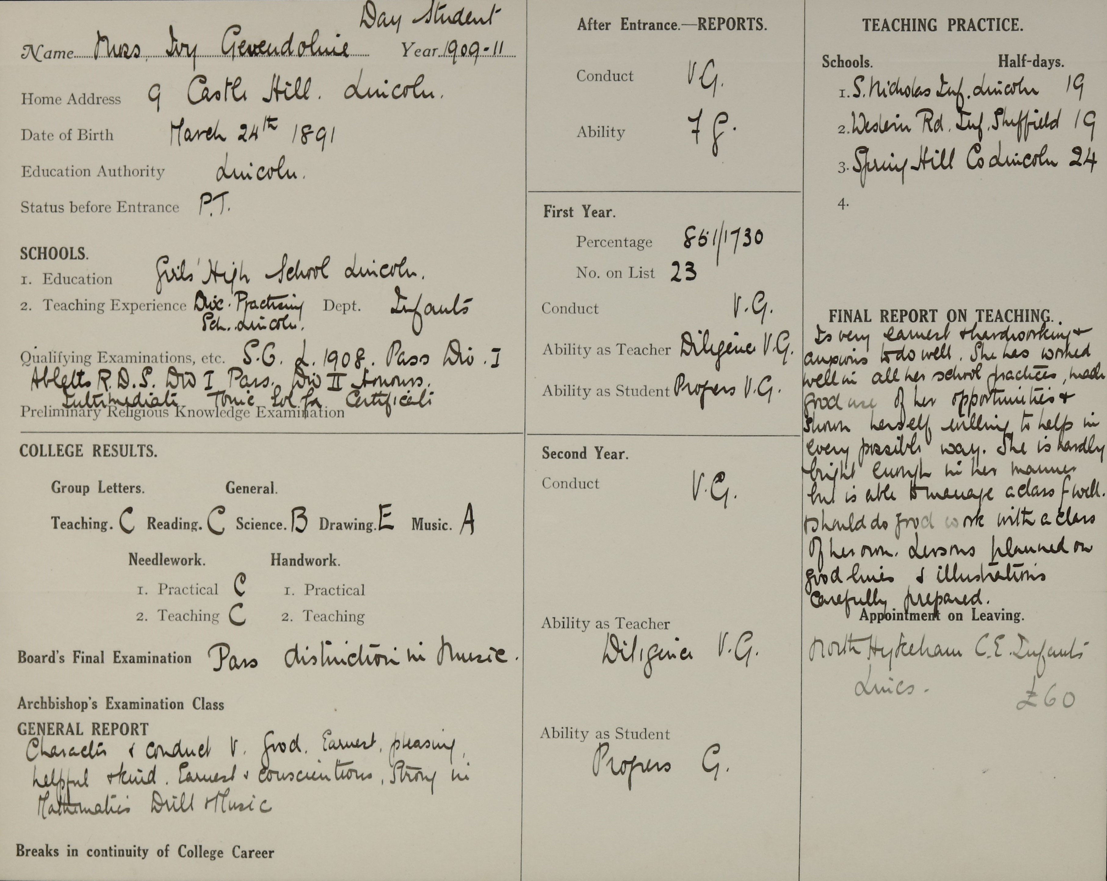 Appointed to North Hykeham C.E. Infants', Lincolnshire. £60.
