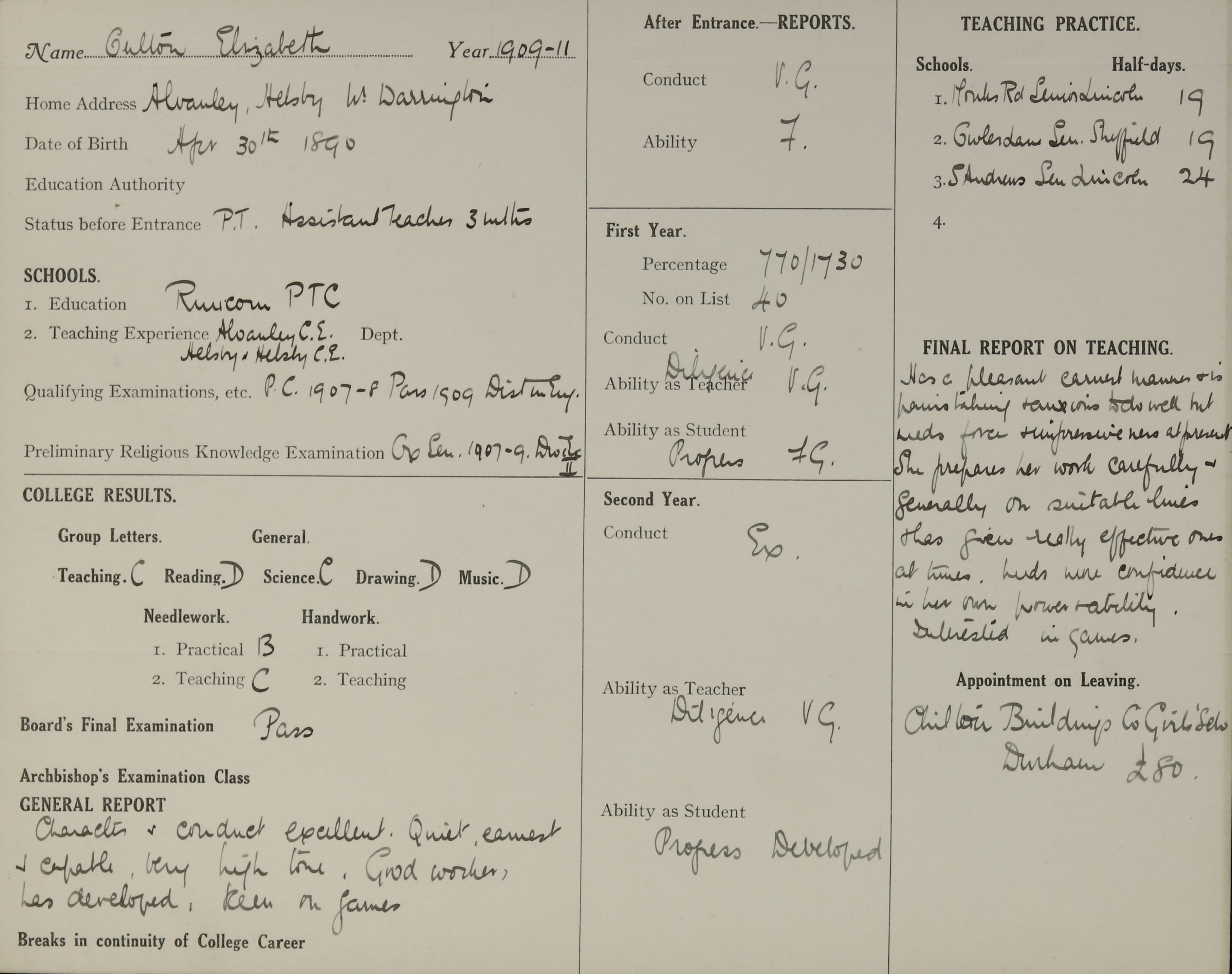 Qualification: Oxford Senior, 1909.