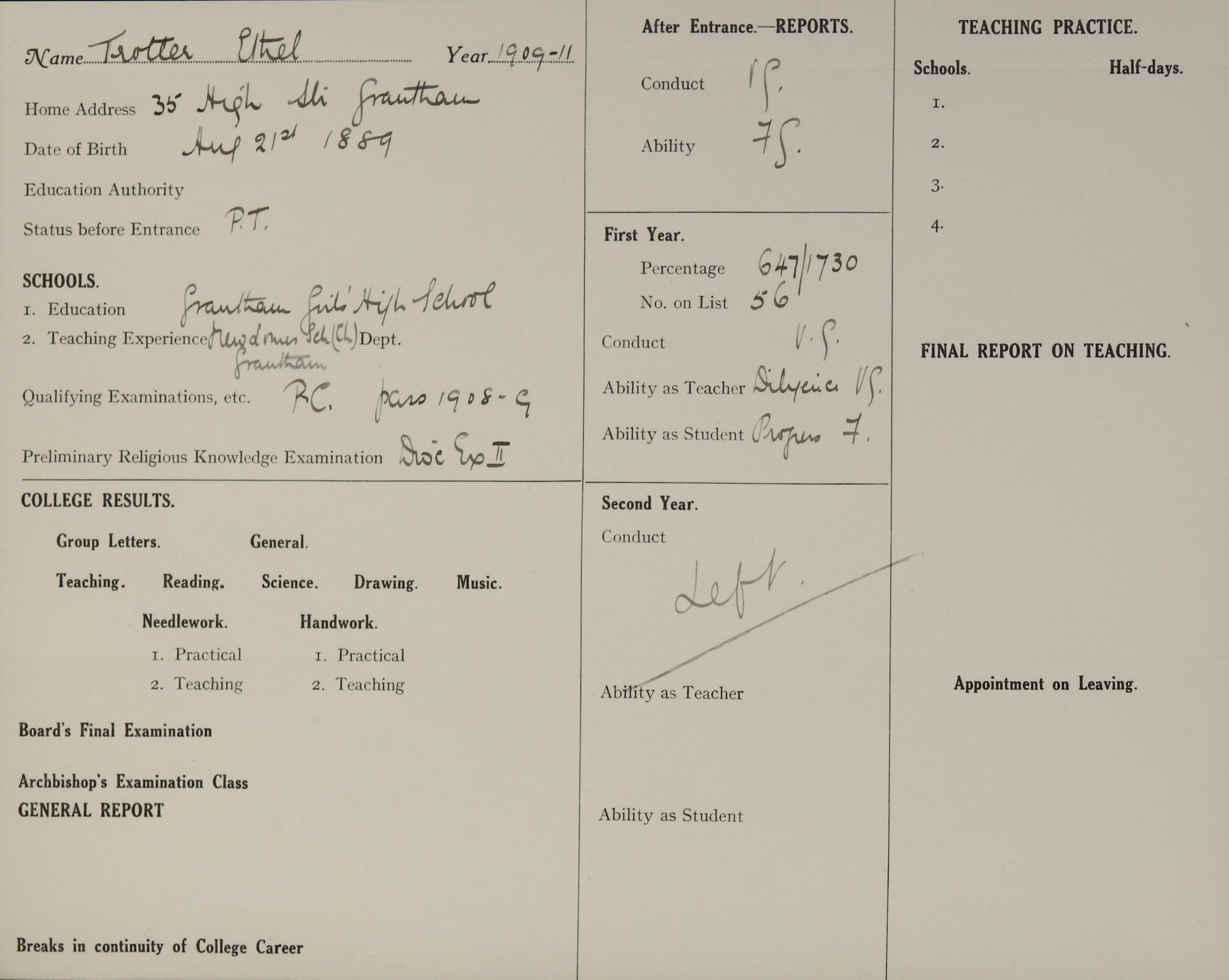 Born: 21 August 1889, Grantham