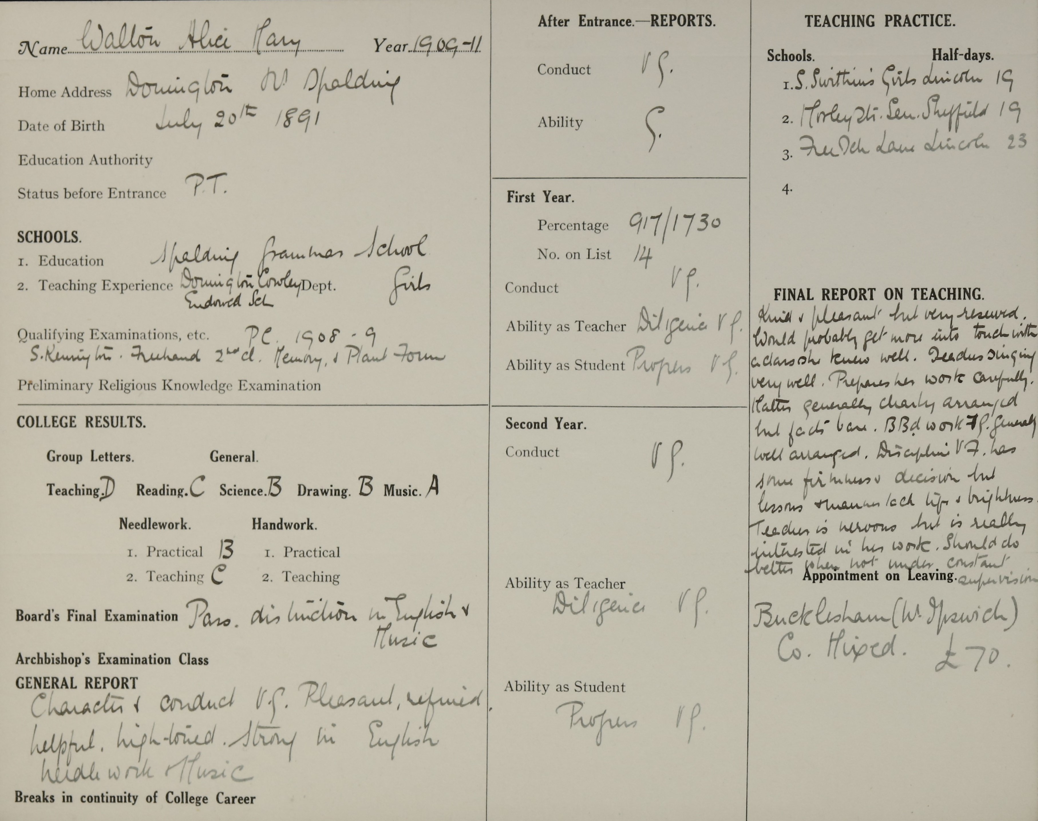 She is at 49 Oakley Road, Luton. Her husband is listed as ‘Local Government Servant – Treasury Department’. Alice is listed as ‘Formerly Elementary Certified Teacher’. Her daughter, Dorothea, is unlisted. There is a closed record.