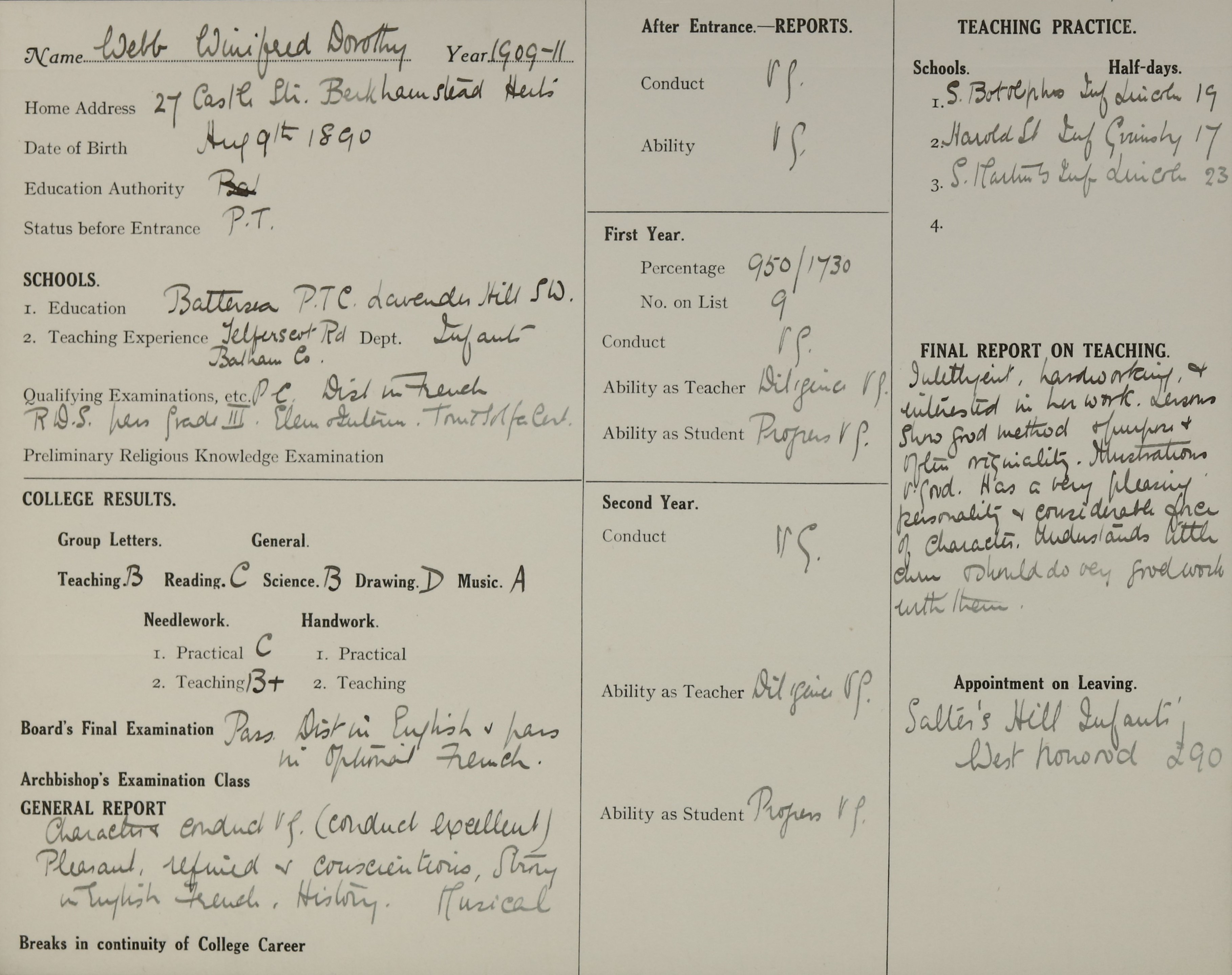Appointed to Salter's Hill Inf., West Norwood. £90.
