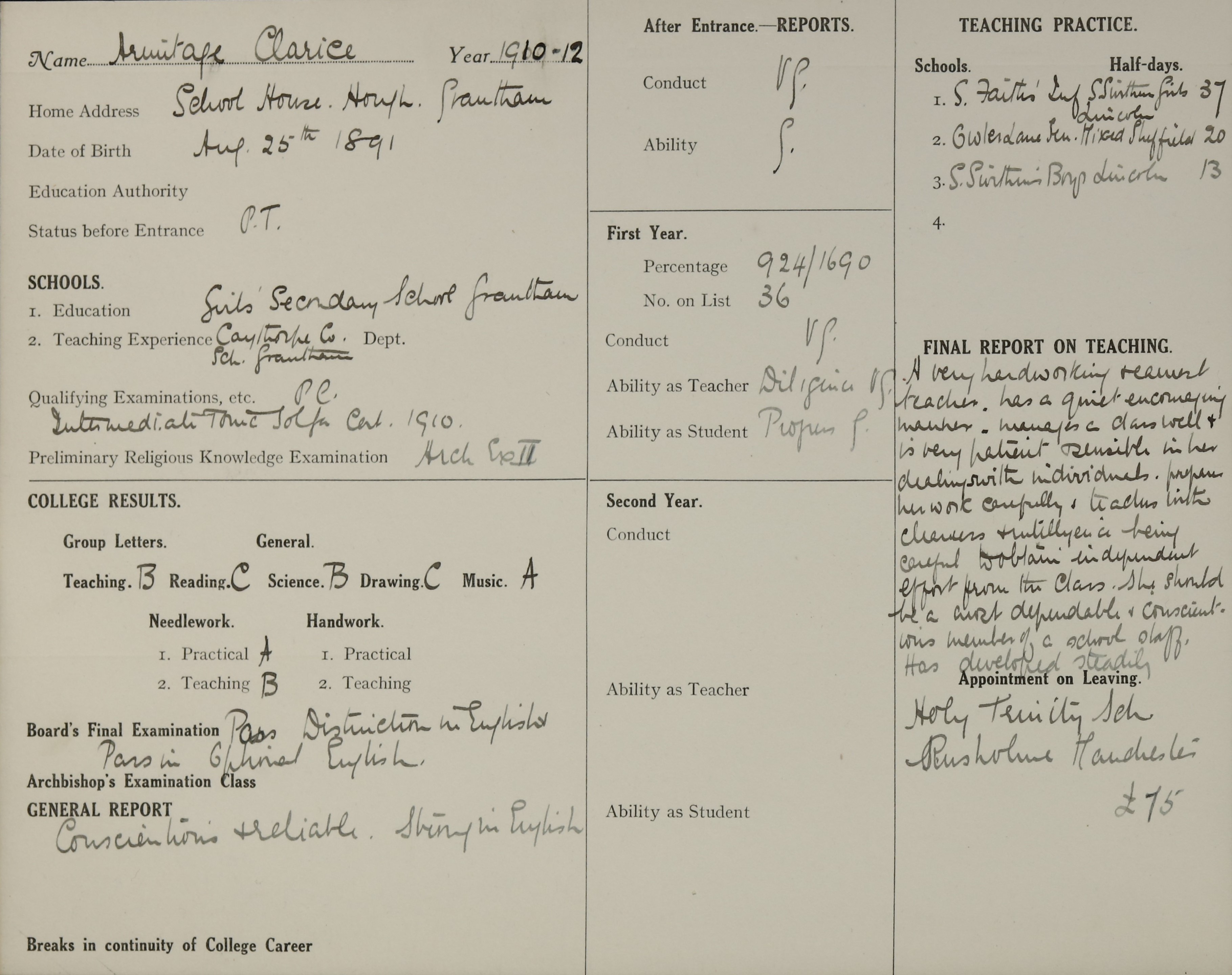 She is at 10 Steep Hill, Lincoln. Clarice and her sister, Marian, are listed as ‘Elementary School Teachers’.