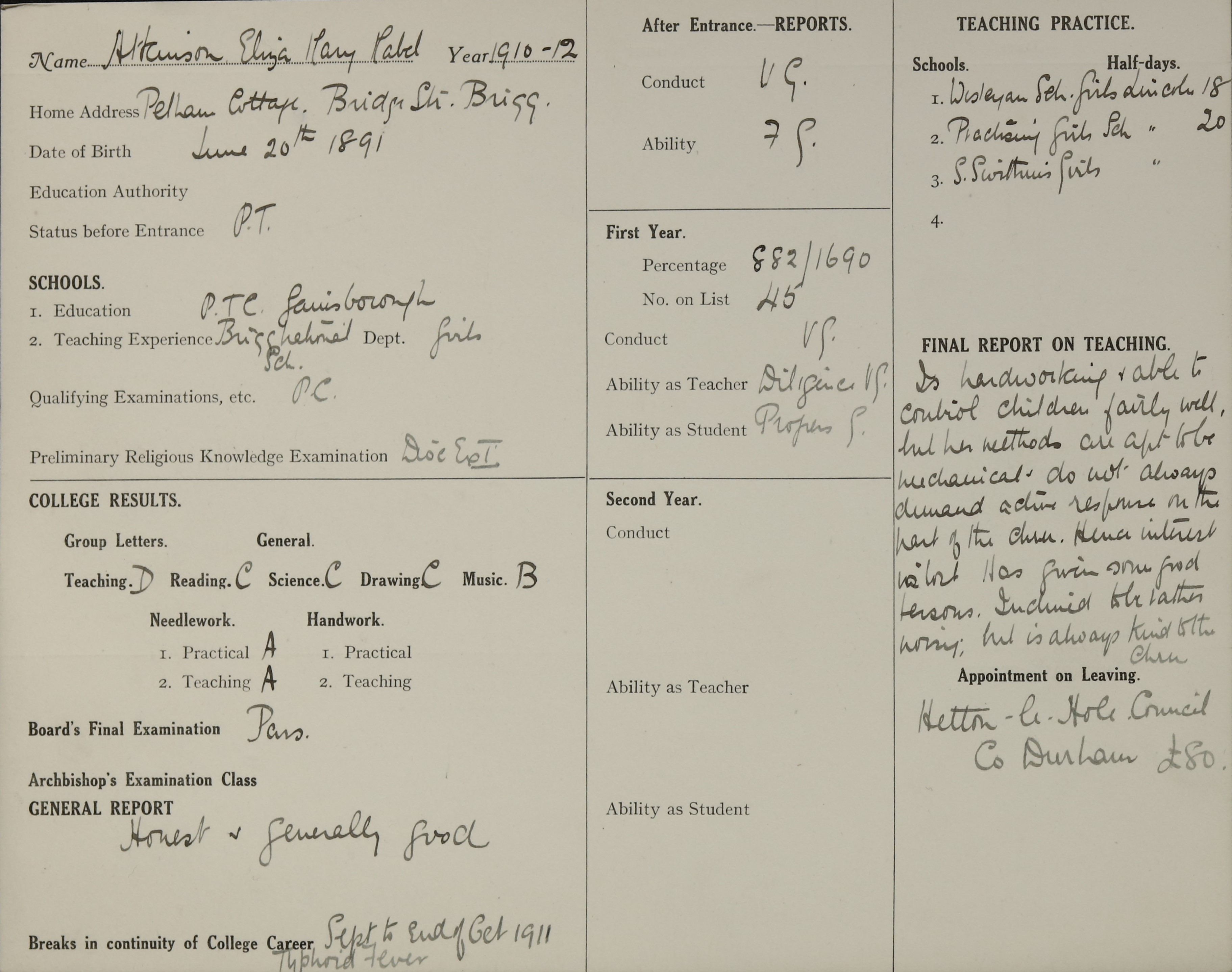Qualification: P.C., 1910.