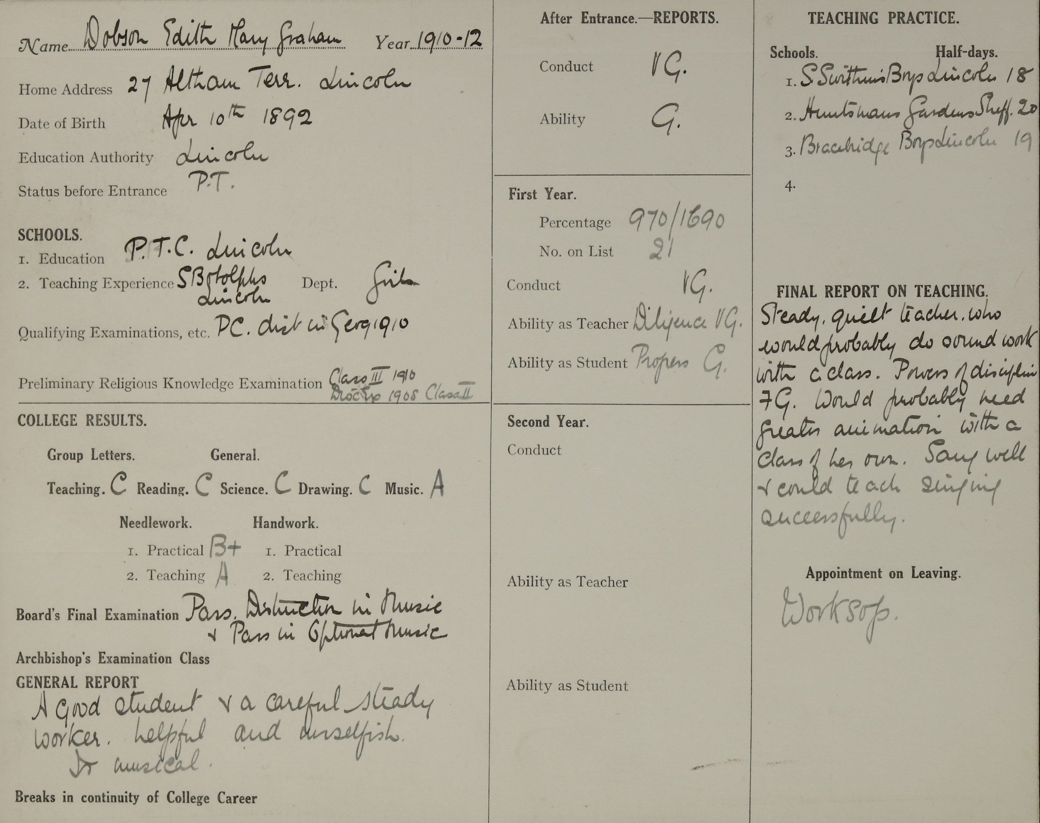She is at 27 Altham Terrace, Lincoln. Edith is listed as ‘School Teacher’. There is a servant, Annie Askew (b. 1892).