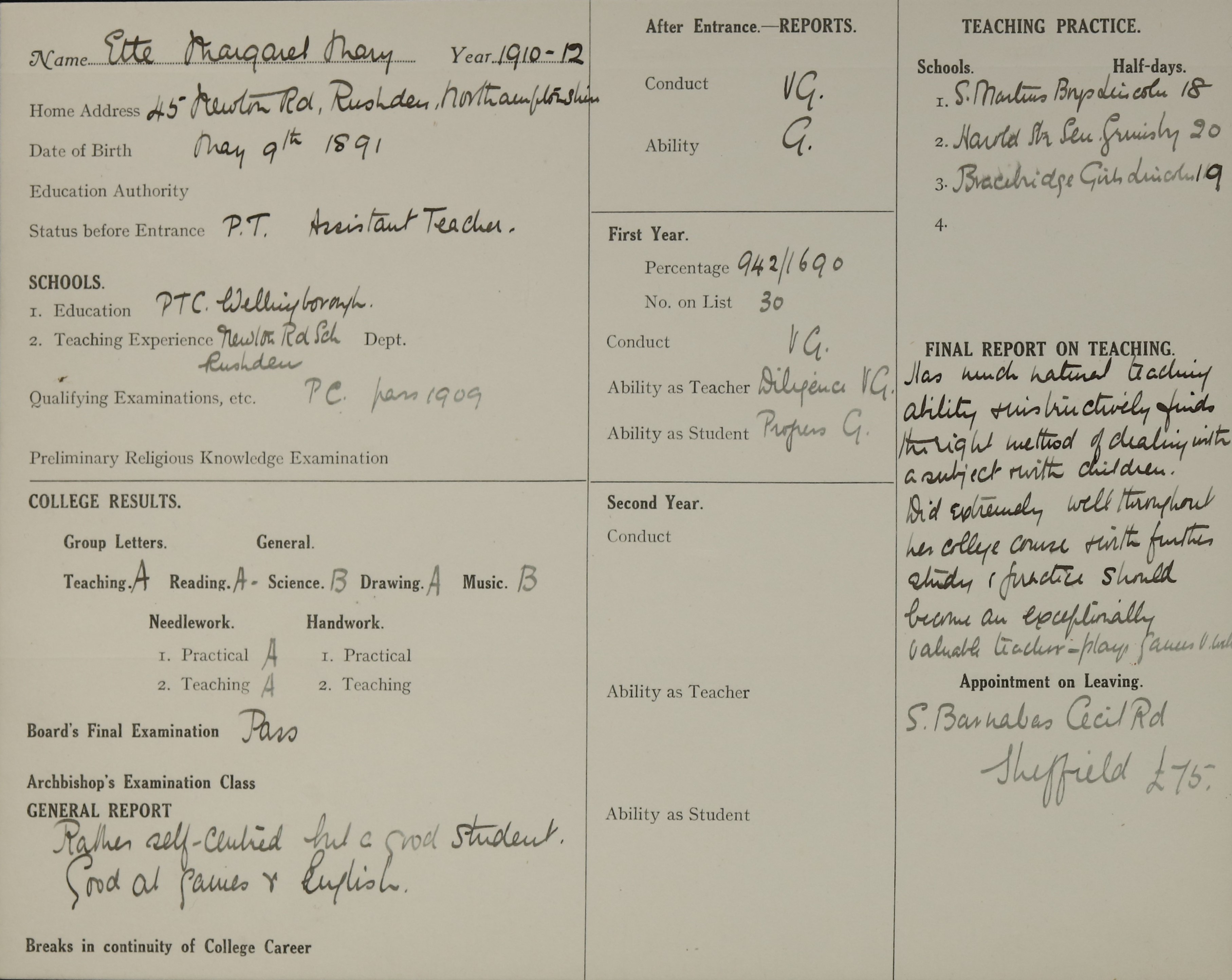 Born: 9 May 1891, Wellingborough