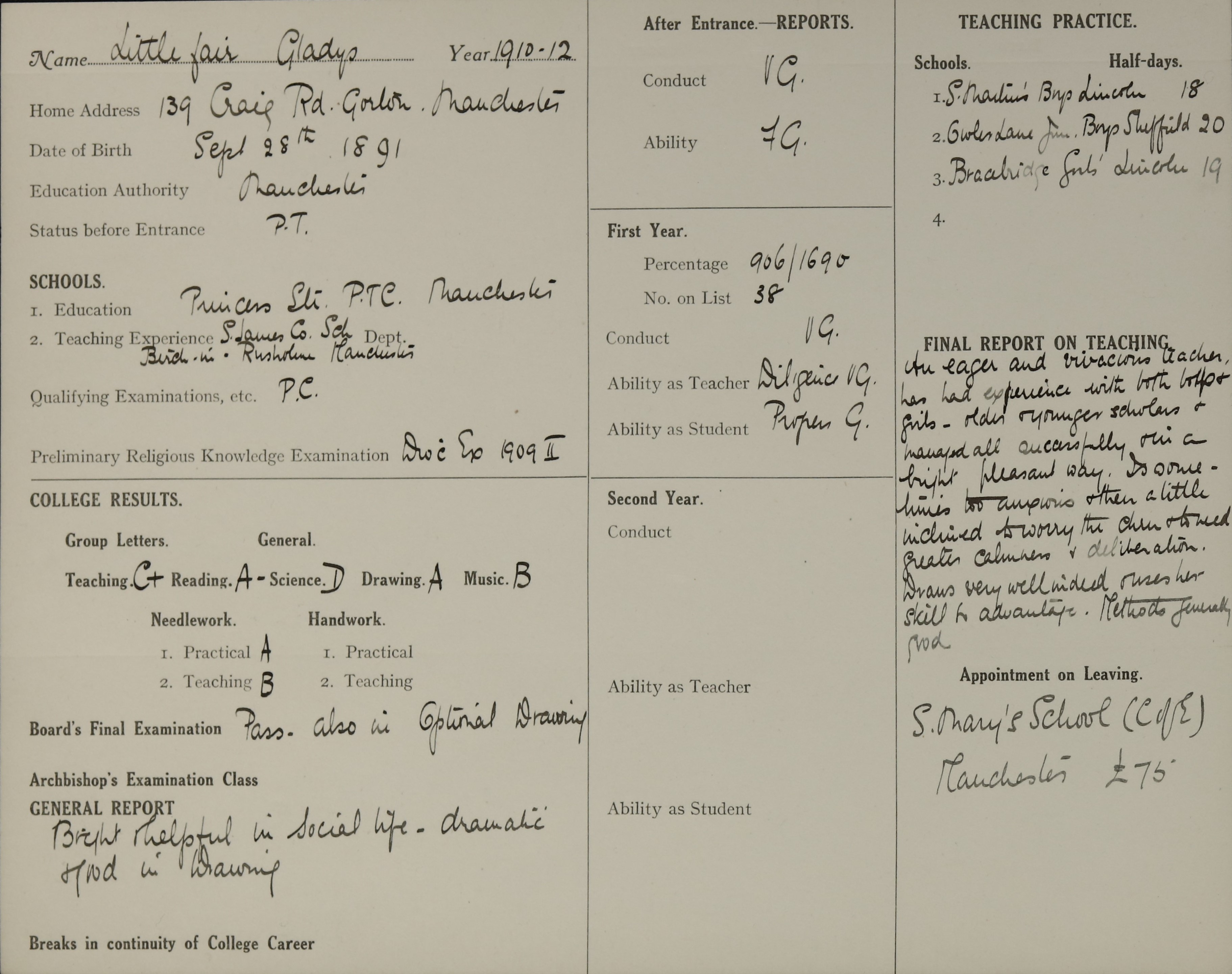 Appointed to St. Mary's School, Hulme (C.E.), Manchester. £75.