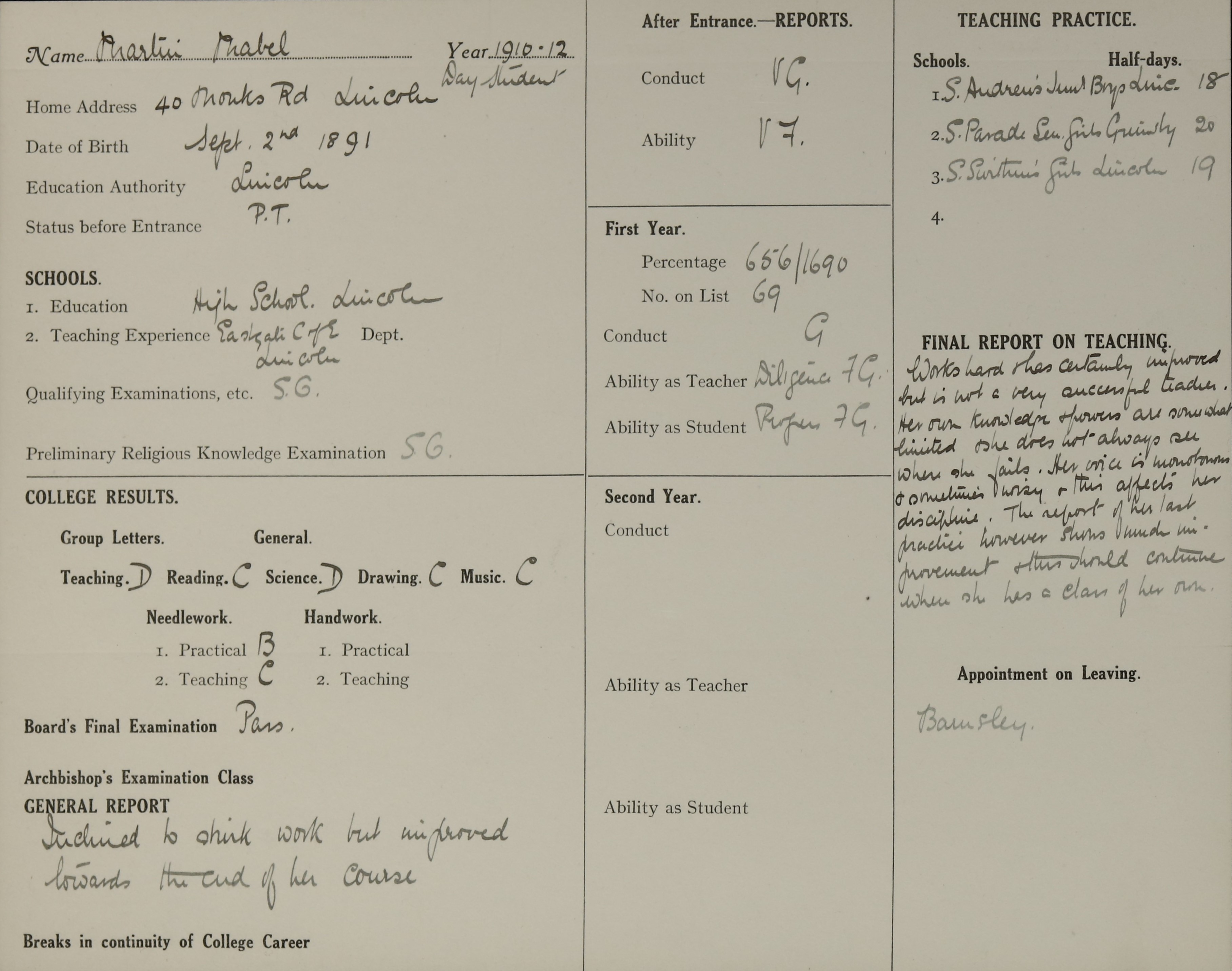 Born: 2 September 1891, Lincoln