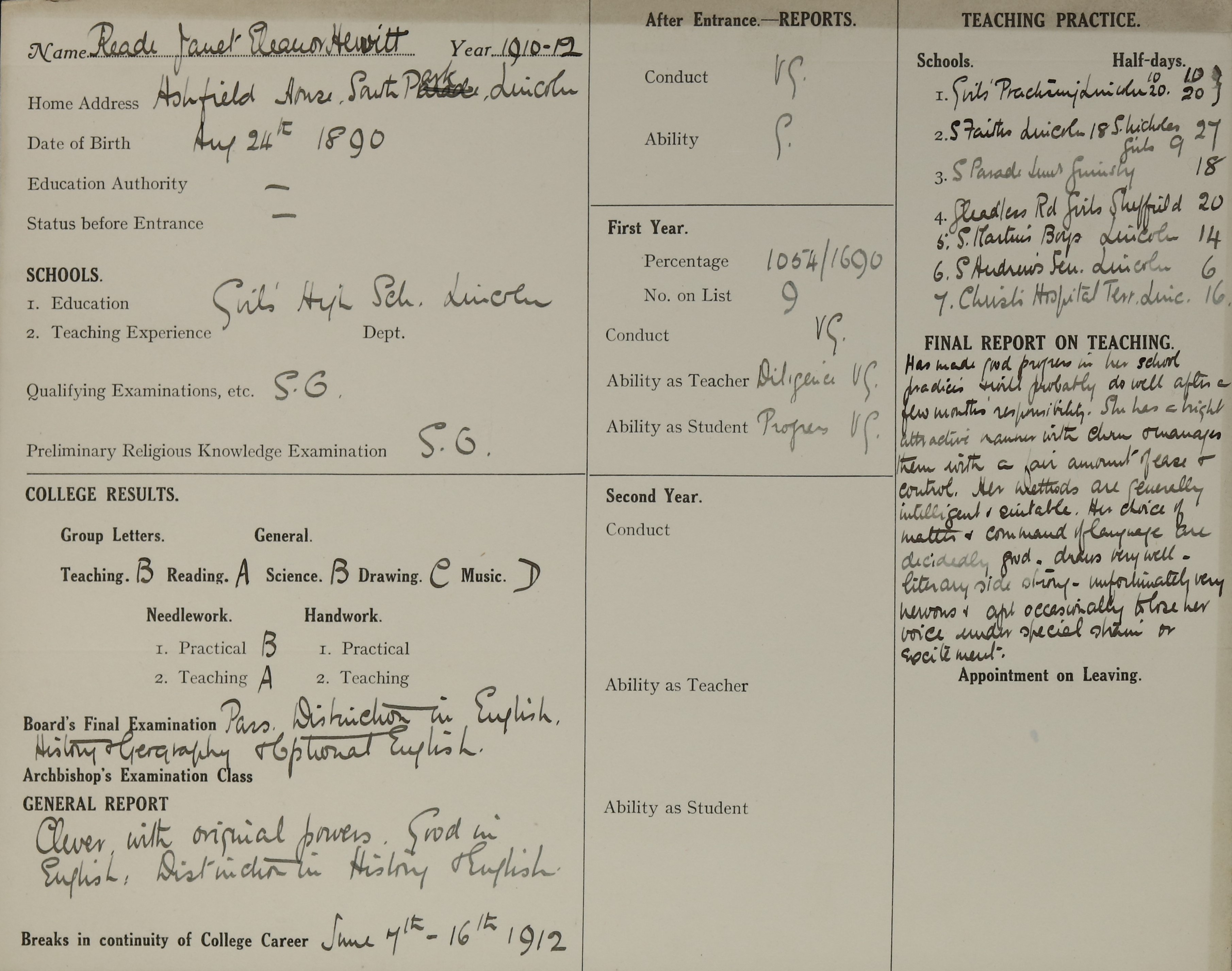 Born: 24 August 1890, Lincoln