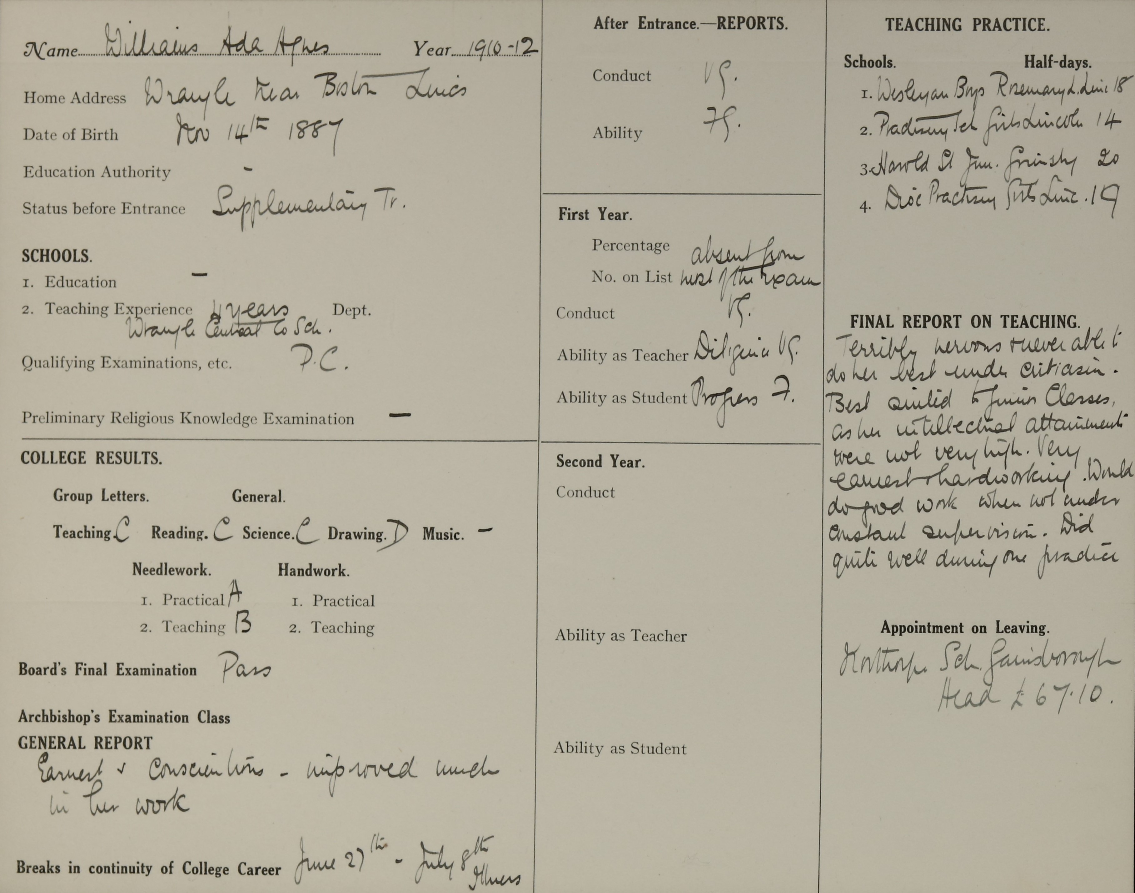 She is at Common Road, Wrangle, Boston. Her father is listed as ‘Farmer’. Ada, her mother and sister, Gertrude, are unlisted.