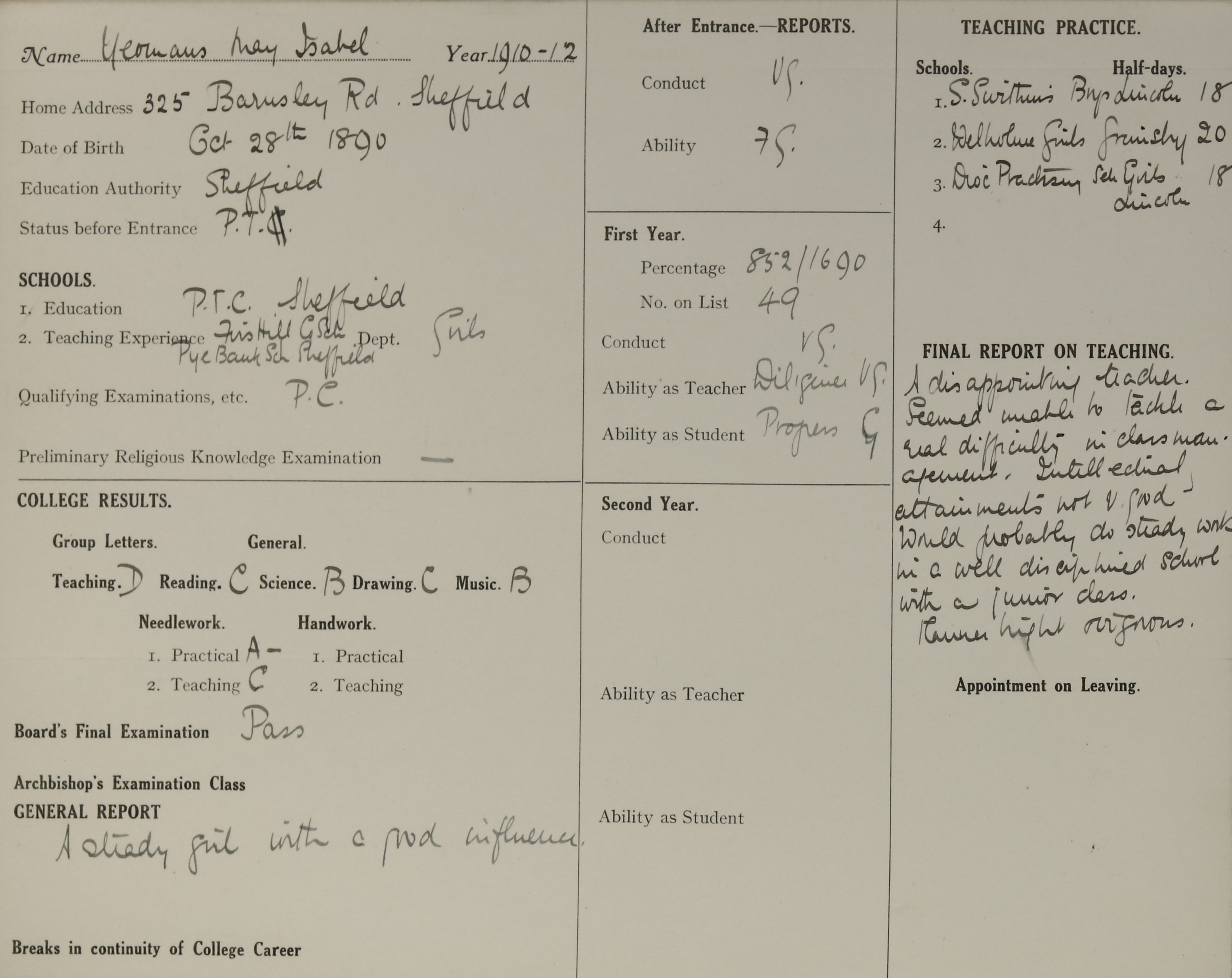 Born: 28 October 1890, Sheffield