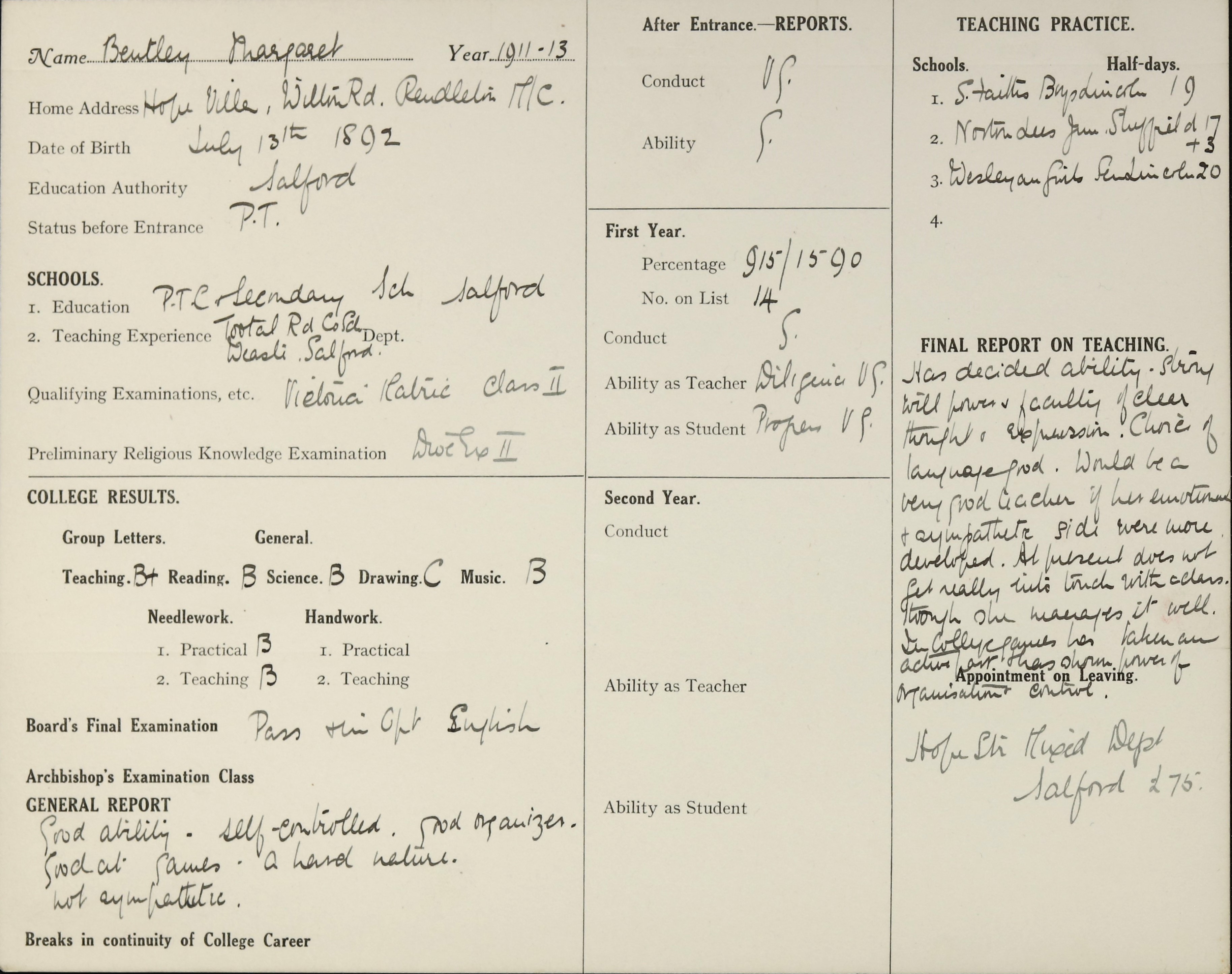 Born: 13 July 1892, Salford