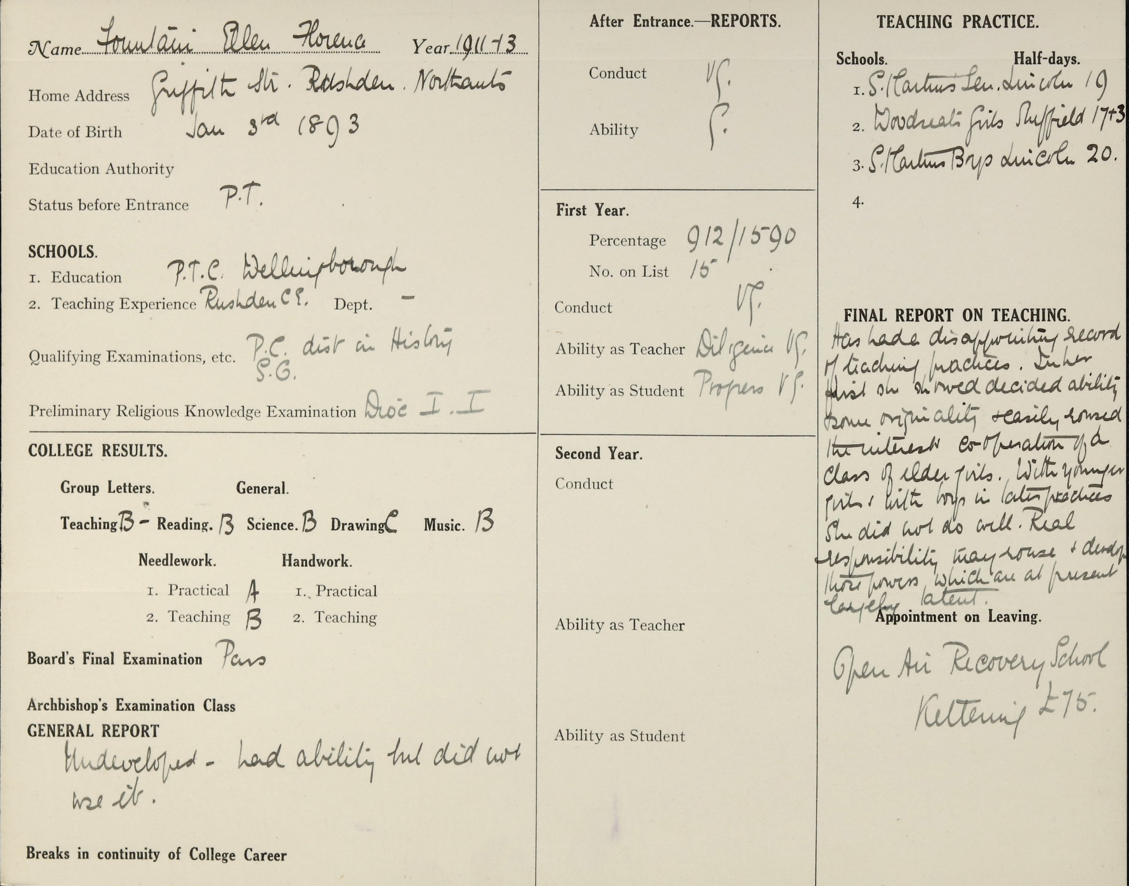 Born: 3 January 1893, Wellingborough