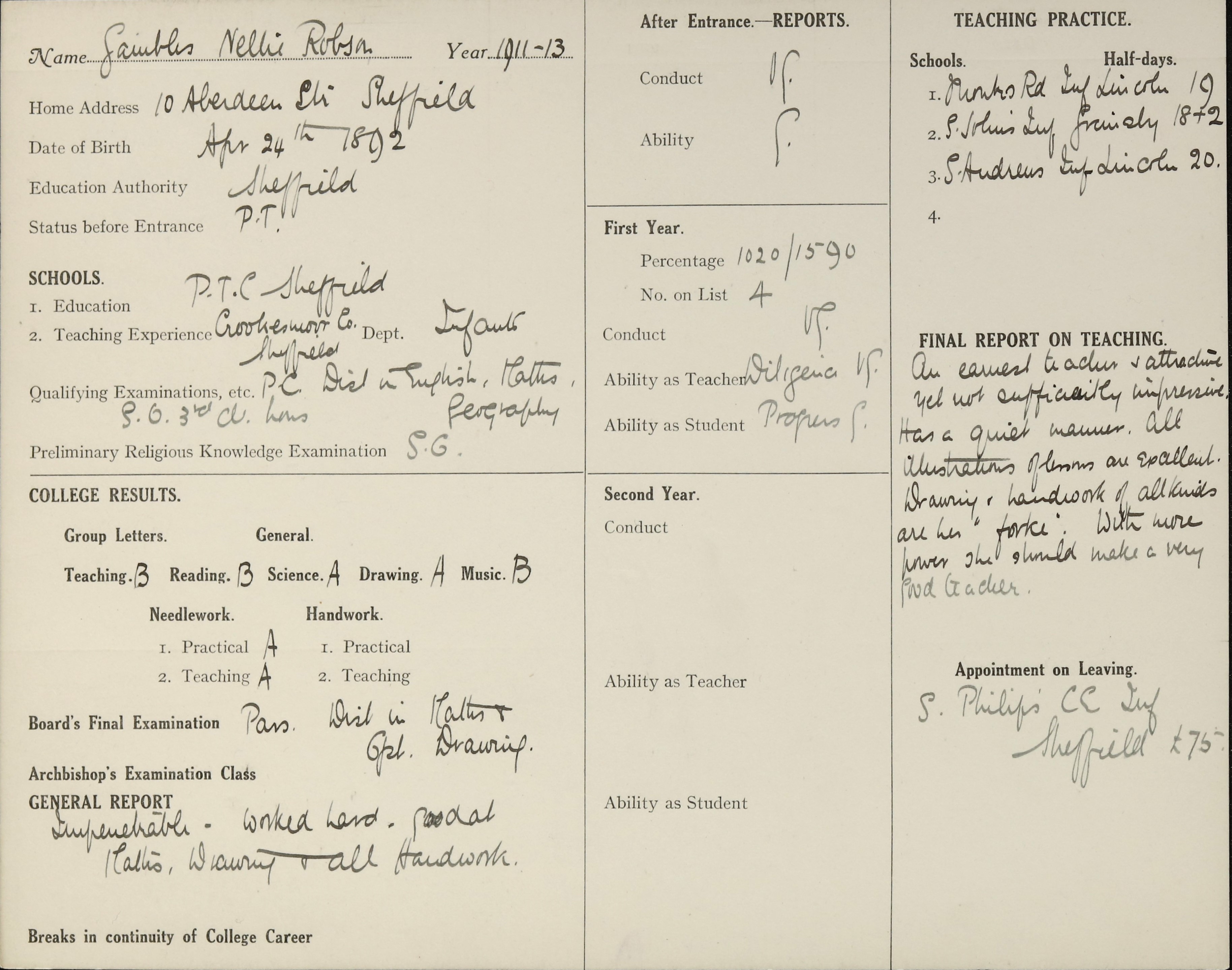 Appointed to St. Philip's C. of E. Infants', Sheffield. £75.